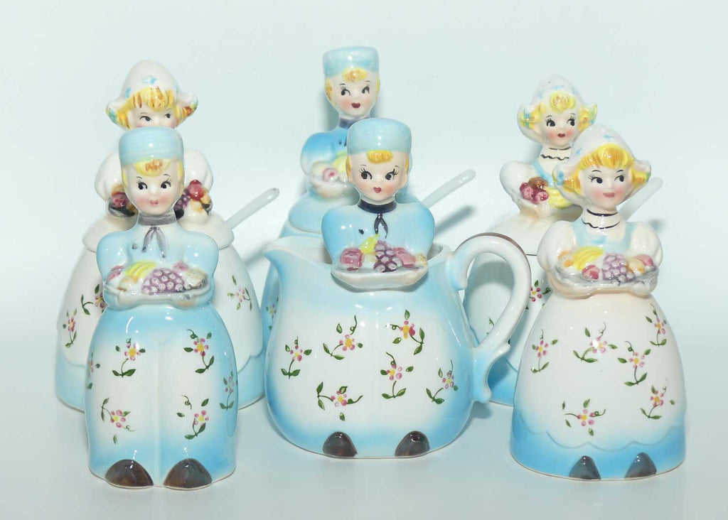 Vintage Retro Kitsch Dutch Boy and Dutch Girl 6 piece cruet set