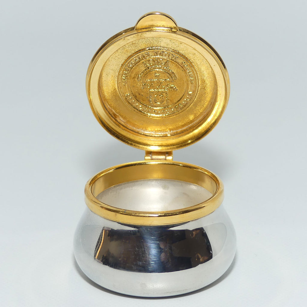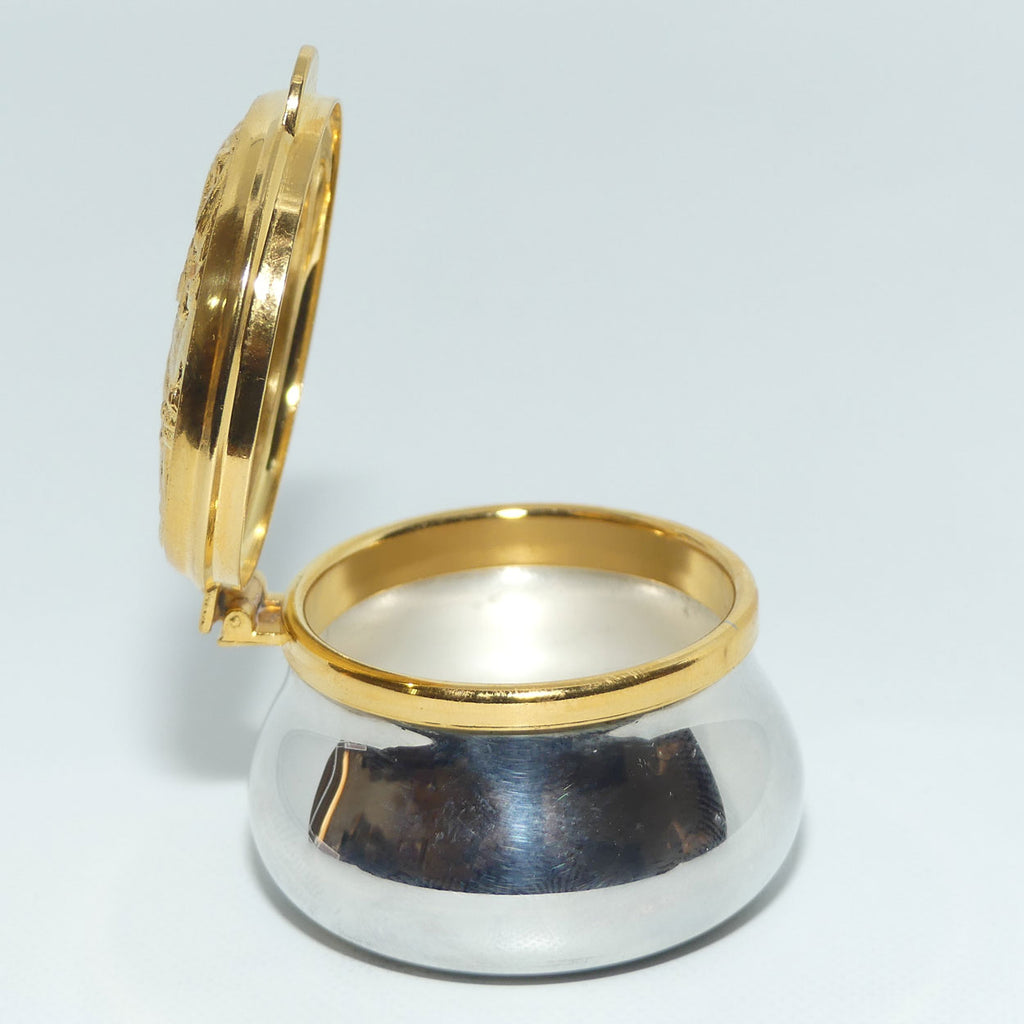 Stuart Devlin was born in Geelong, Victoria, Australia, and became an art teacher, specialising in gold and silversmithing. In 1957, he obtained a post at the Royal Melbourne Institute of Technology and studied for a Diploma of Art in gold and silversmithing. He was awarded scholarships to study at the Royal College of Art in London in 1958, and was awarded a Harkness Fellowship by the Commonwealth Fund. He spent the two-year fellowship at Columbia University in New York City where he met and married his first wife, Kim Hose, in 1962.