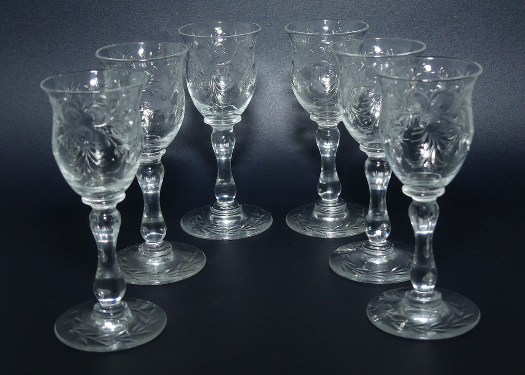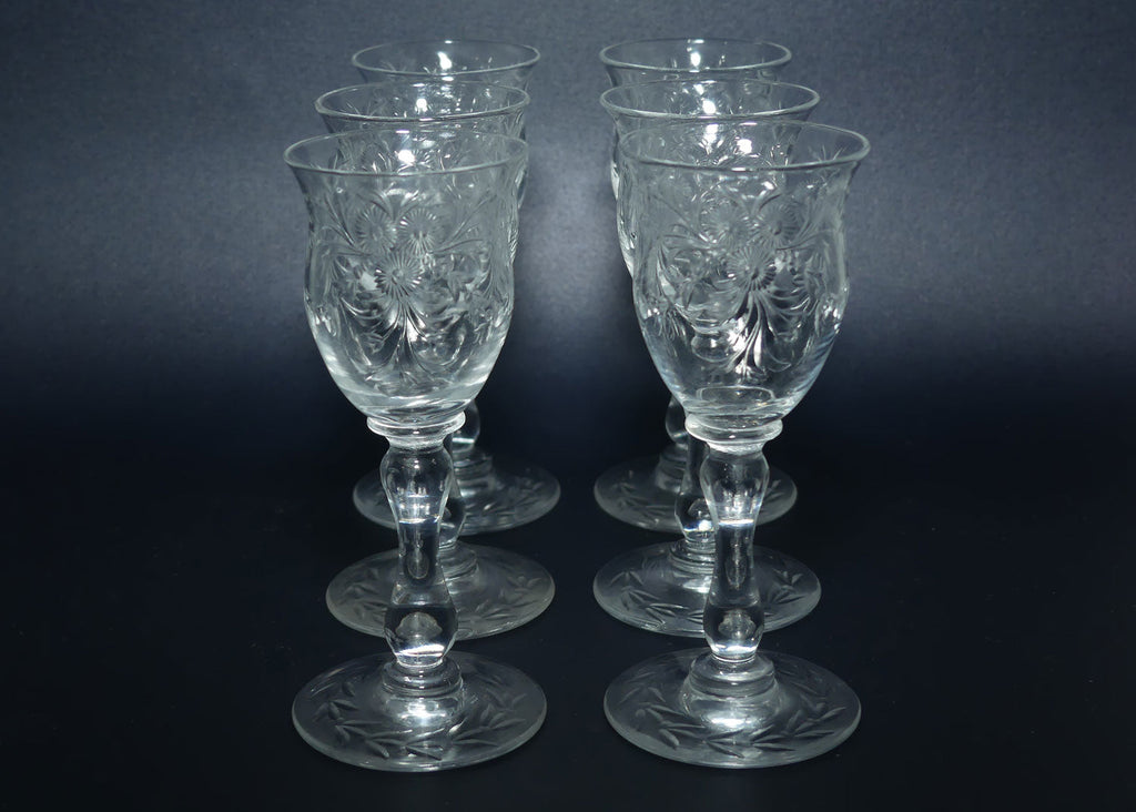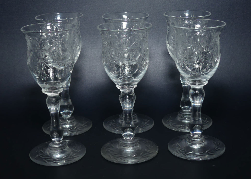 Victorian era Fine Floral Decorated Crystal set of 6 Liqueur glasses