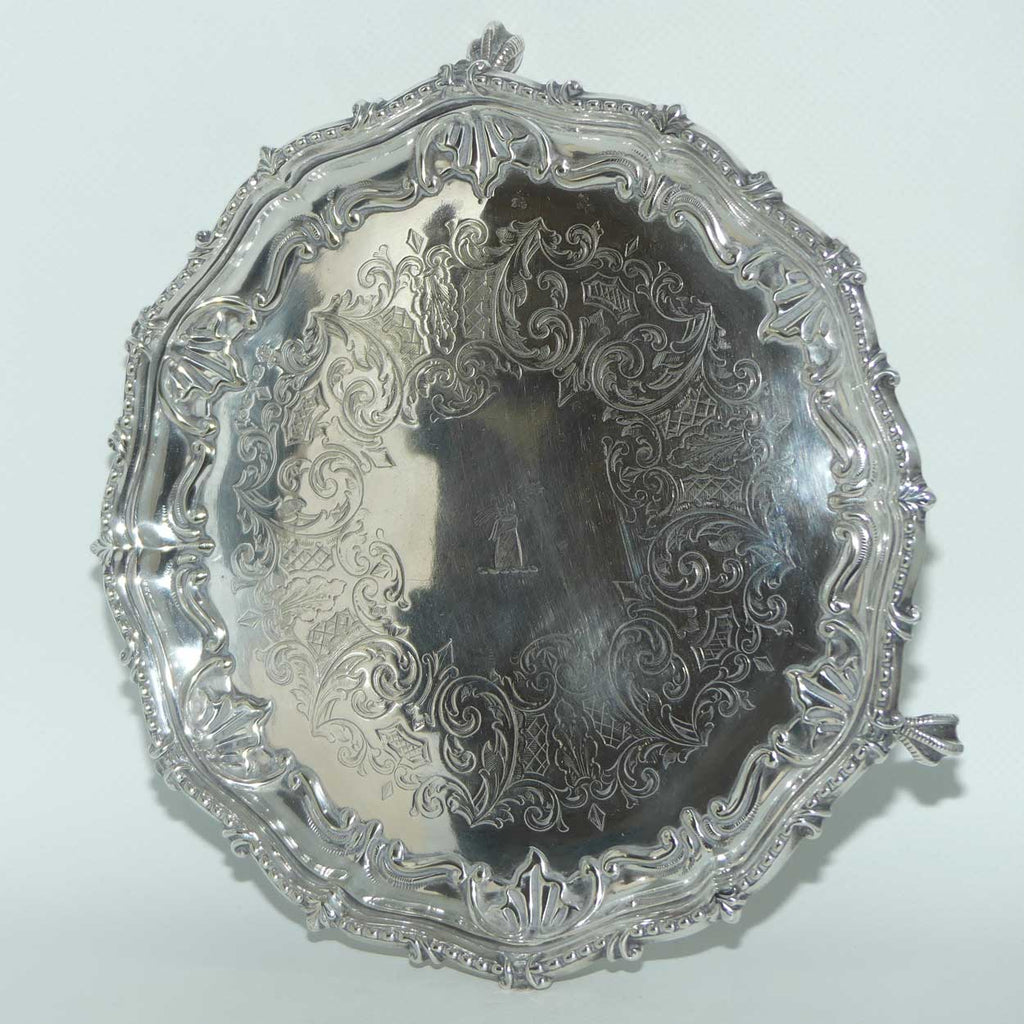 Victorian era Silver Plated salver with Ball and Claw feet