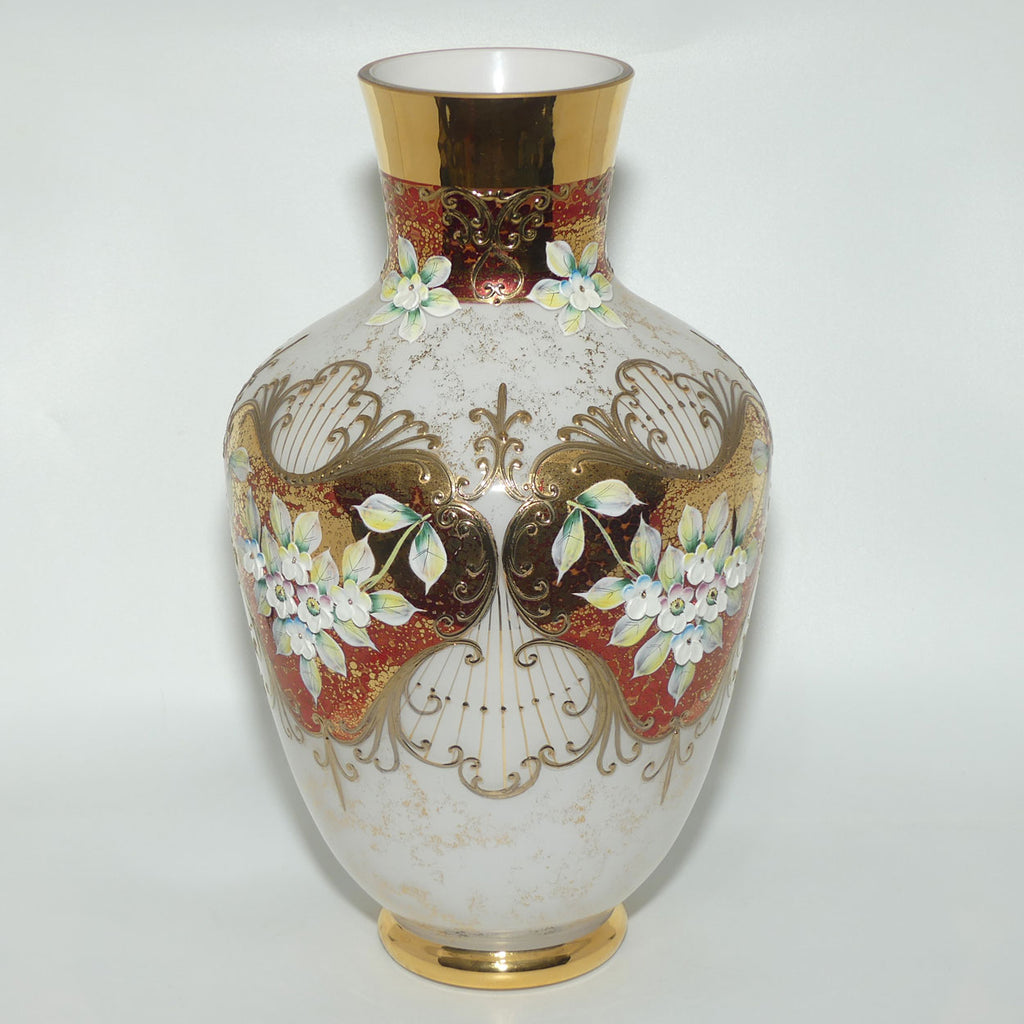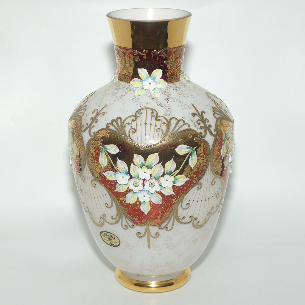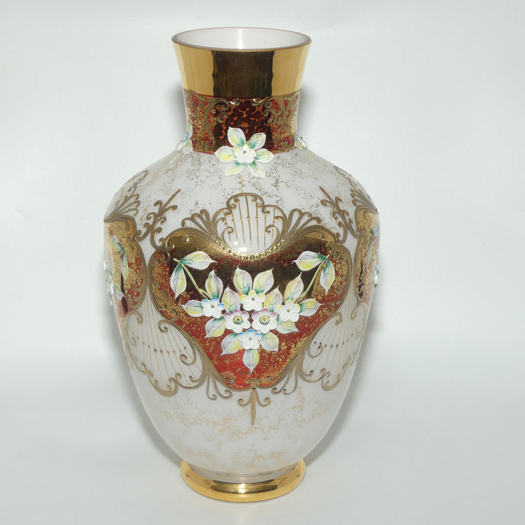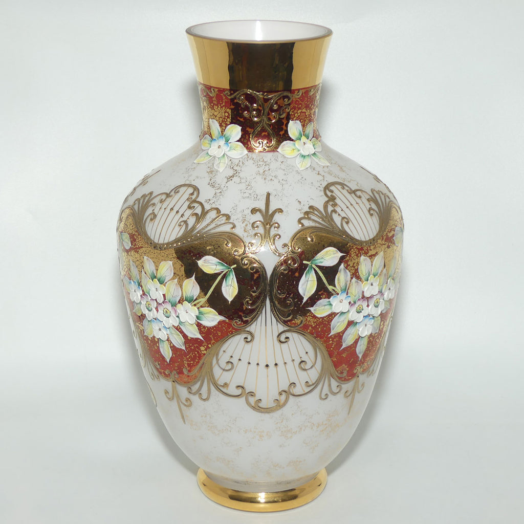 Bohemian Art Glass hand enamelled and gilt floral vase