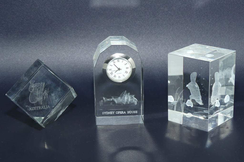 One is a square cub designed to be displayed on the angle which says AUSTRALIA and depicts a Koala | approx 6.5cms (2 1/2") tall