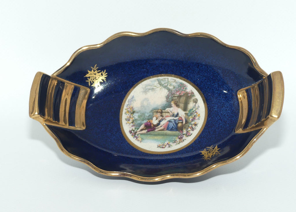 Carlton Ware Mottled Blue tab handle bowl with Courting Couple scene