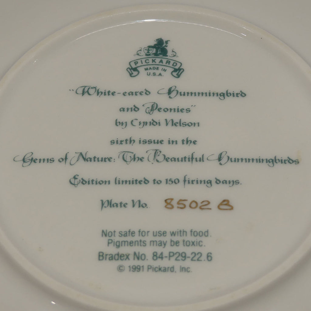 Sixth Issue in the Gems of Nature: The Beautiful Hummingbirds series by Cyndi Nelson. Made by Pickard USA for The Bradford Exchange