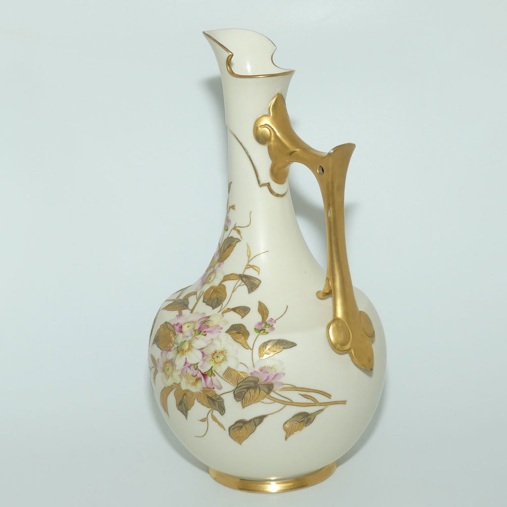 Royal Worcester Blush Ivory and gilt hand painted floral jug with Dogwood Roses