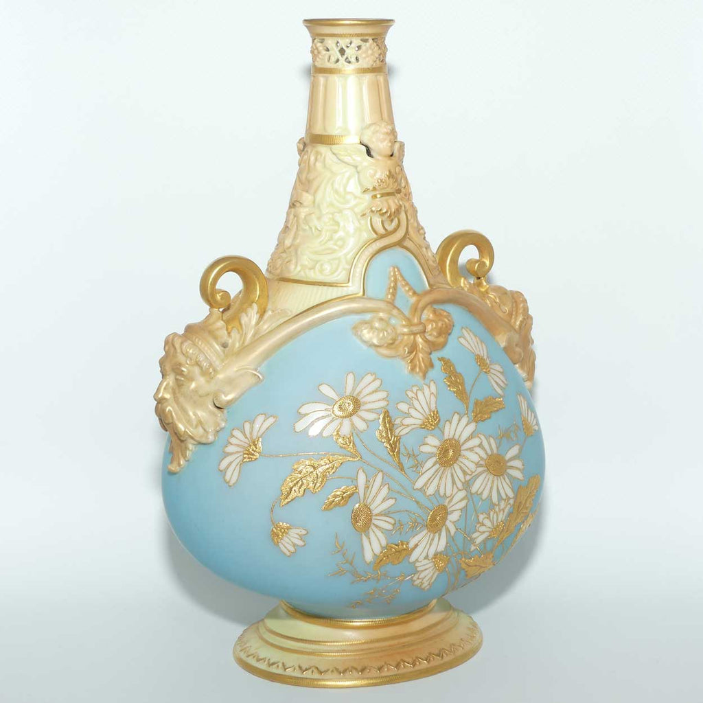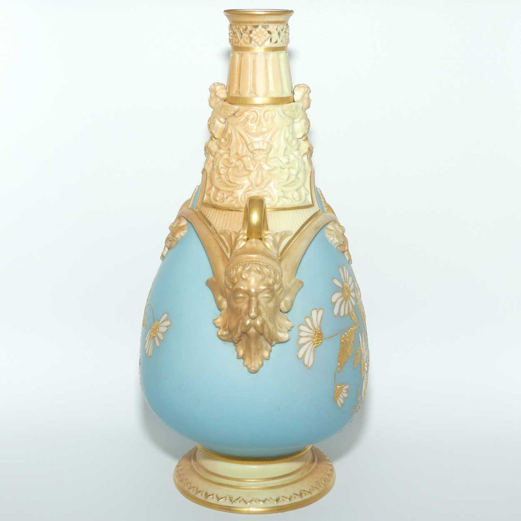 Royal Worcester Blush Ivory and Turquoise Blue hand painted and gilt floral vase