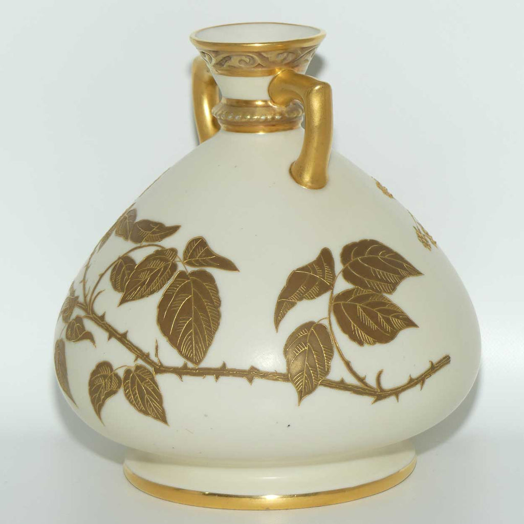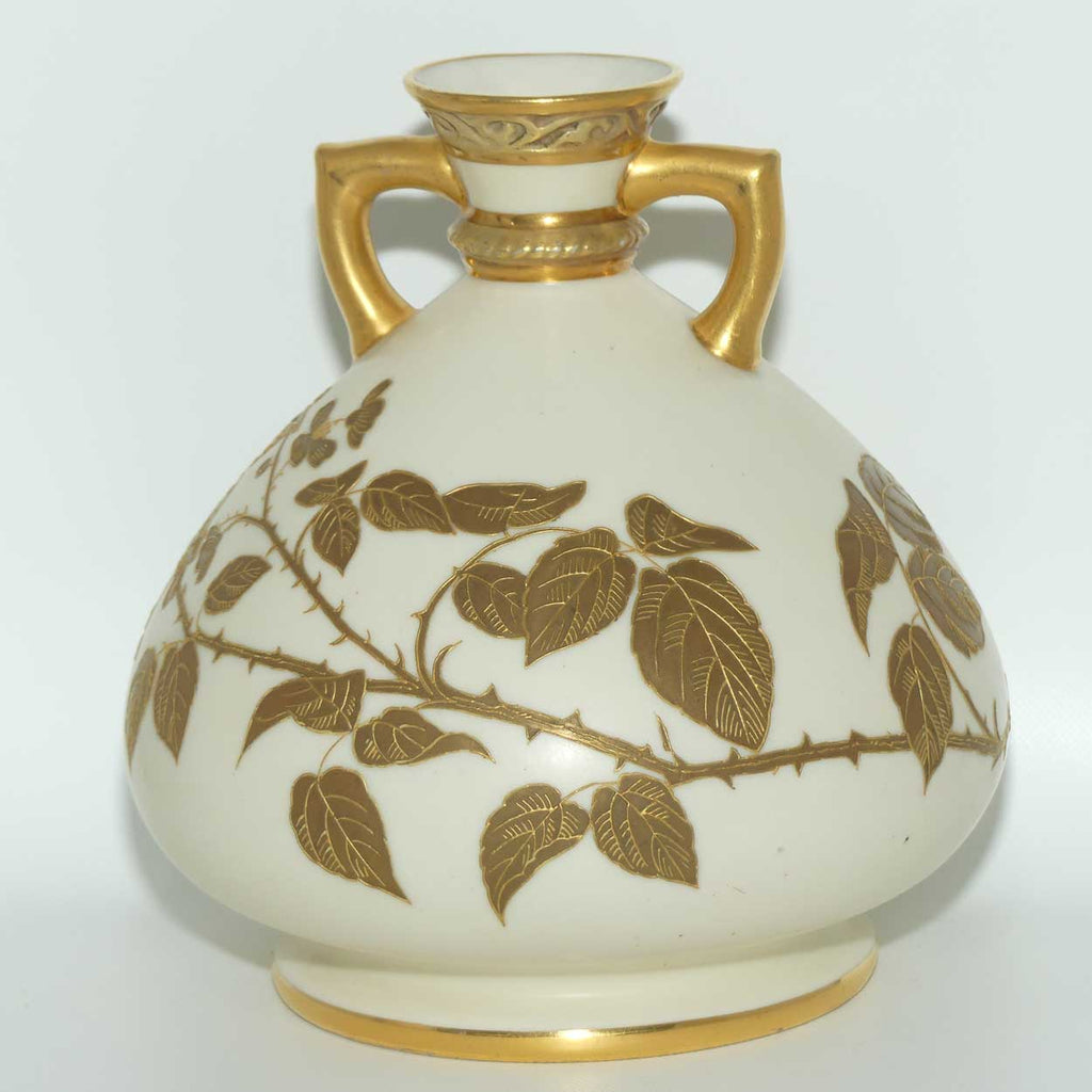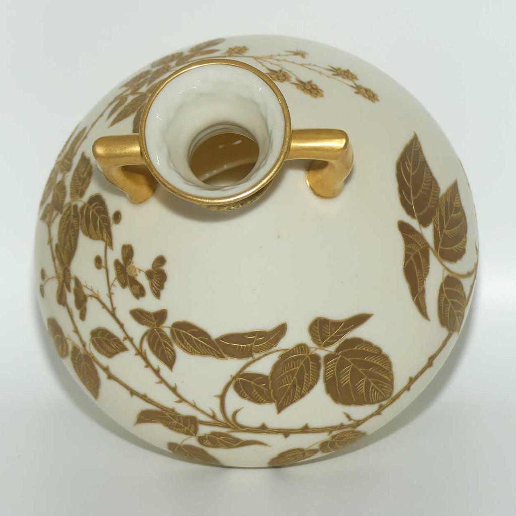 Royal Worcester Blush Ivory hand painted bulbous gilt vase