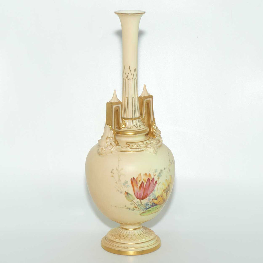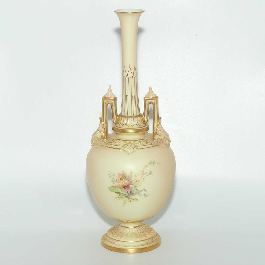 Royal Worcester Blush Ivory hand painted floral vase with spire handles
