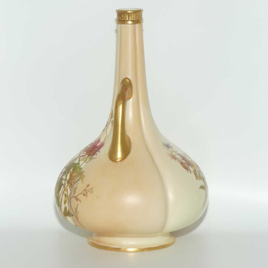 Royal Worcester Blush Ivory hand painted tall narrow neck handled bulbous vase