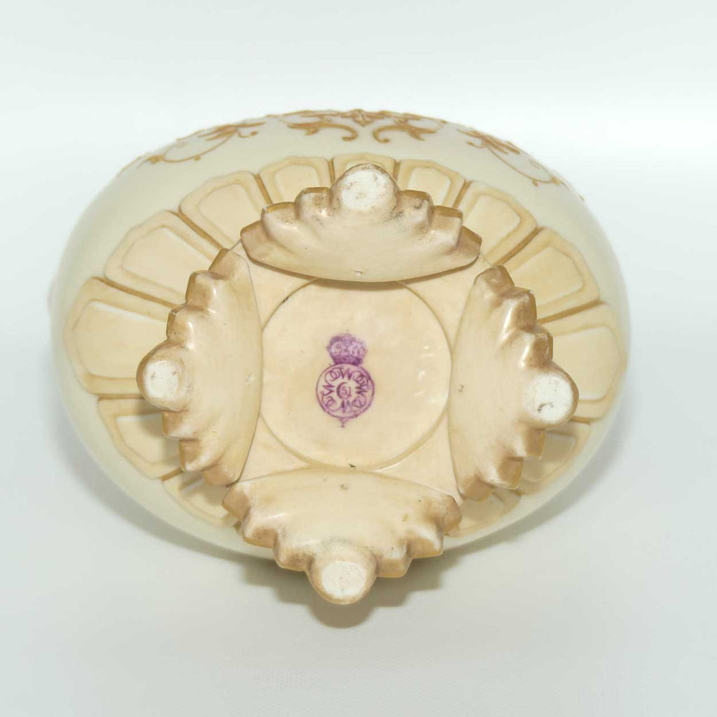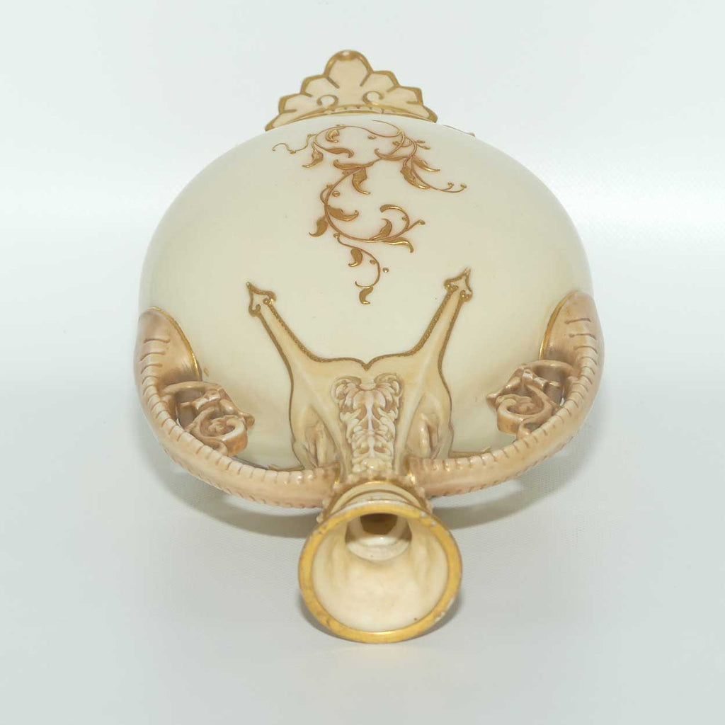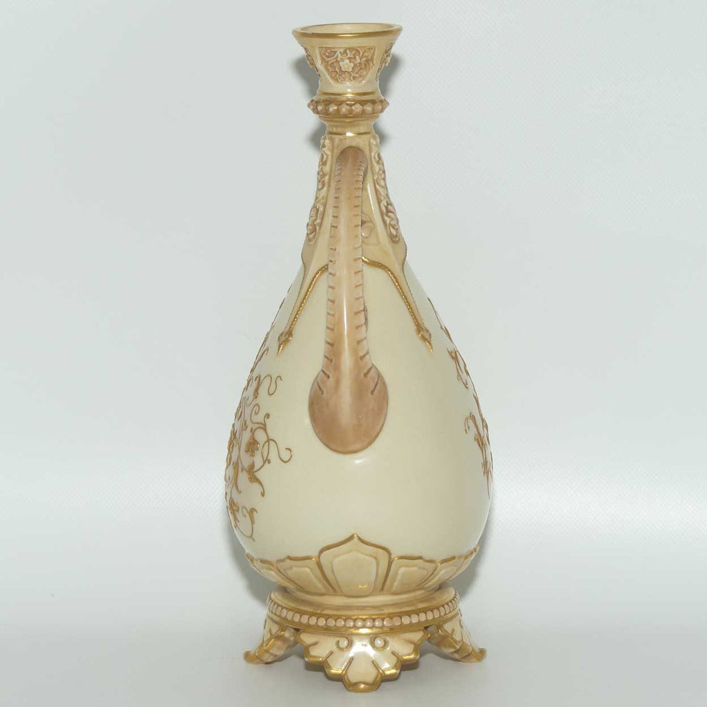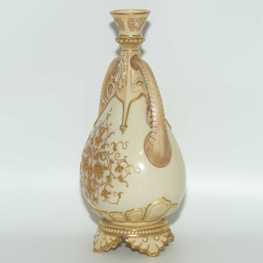 Royal Worcester Blush Ivory heavily gilt handled vase on quad feet