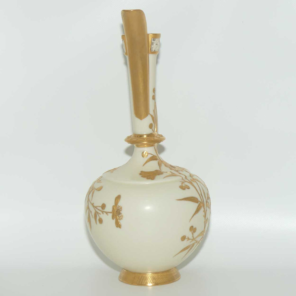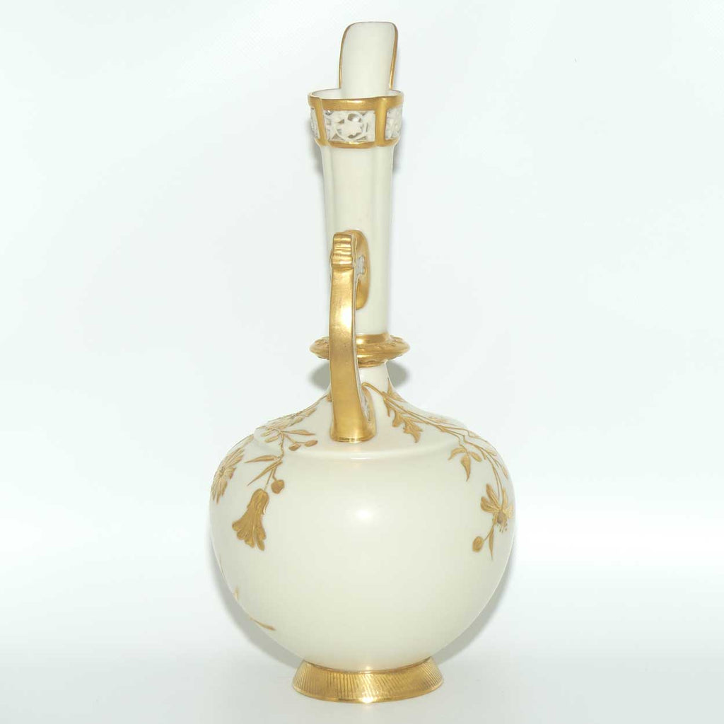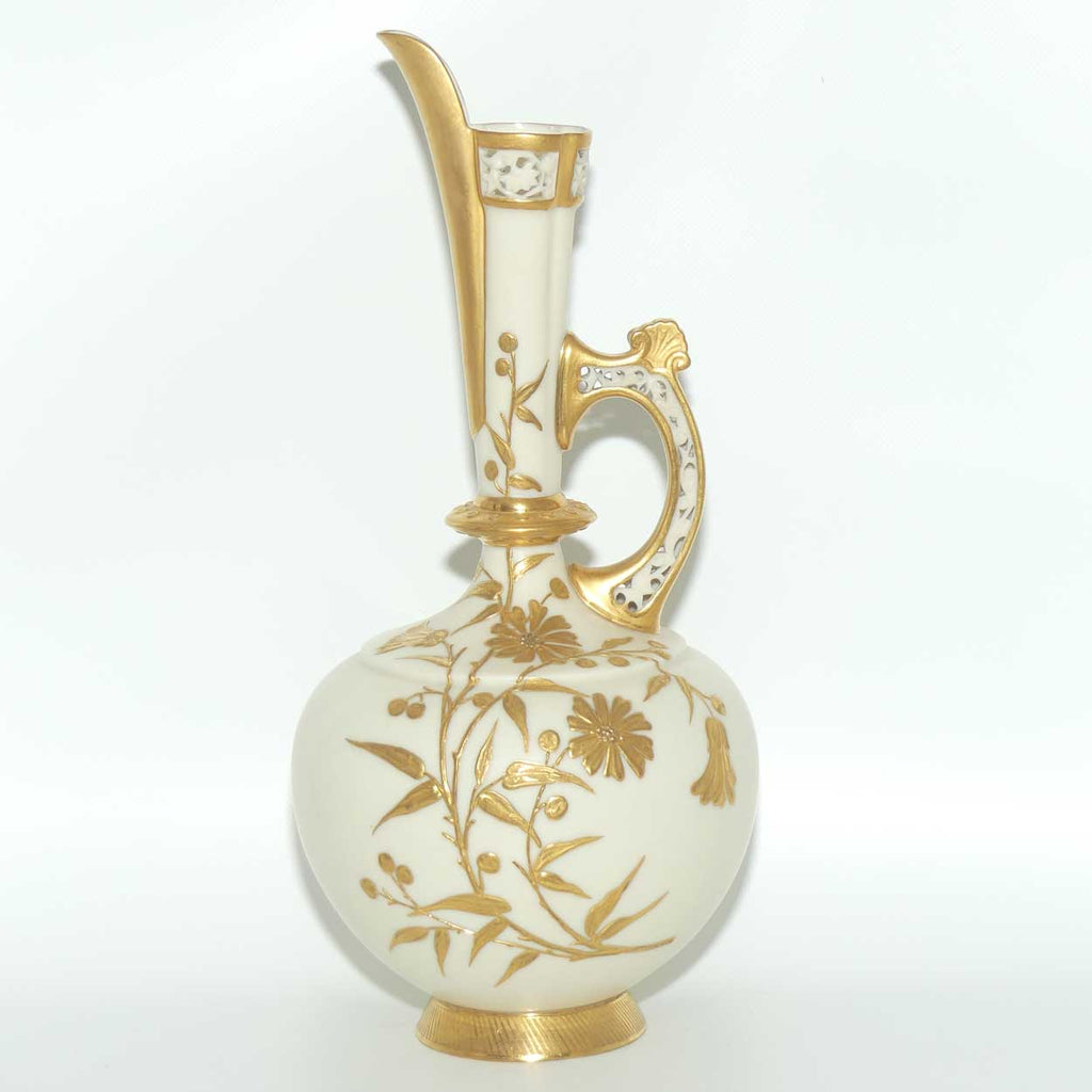 Royal Worcester Blush Ivory heavy gilt floral jug with reticulated handle and gilt pouring rim