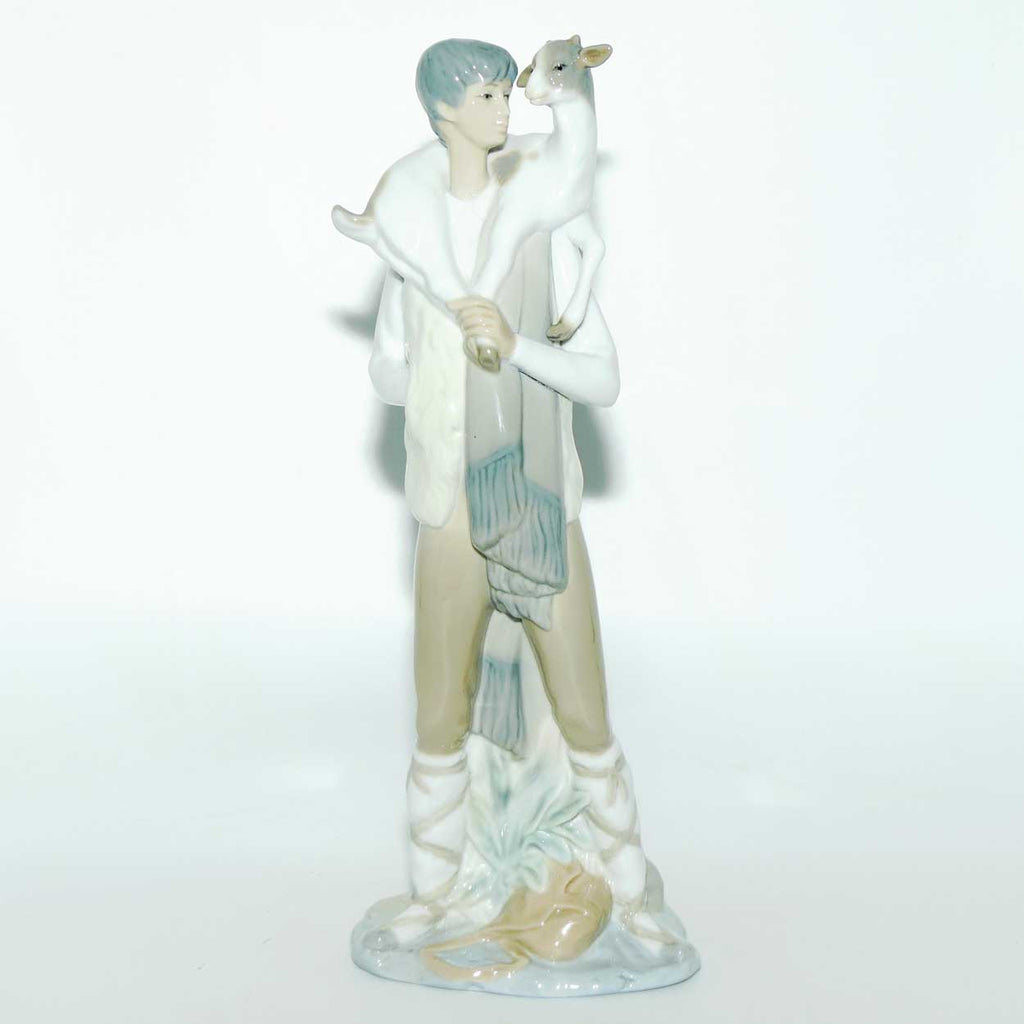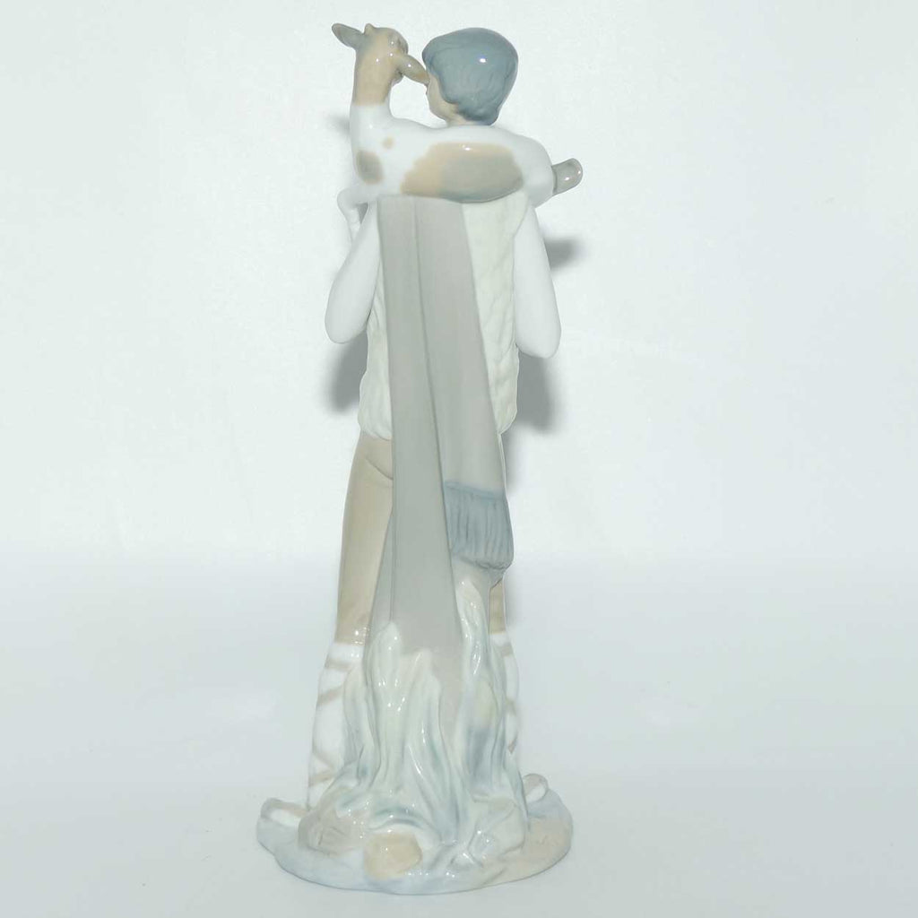 It is worth noting that this figure appears within the Lladro catalog as Lladro #01004506 Shepherd Boy with Goat [or in spanish Pastor Con Cabra] - however this has the earliest recorded example of a Nao Made in Spain impressed factory mark to its base, that is very rarely seen with the word Nao [just legible] and the iconic Sailing Ship to the lower right that later became the Nao trademark.