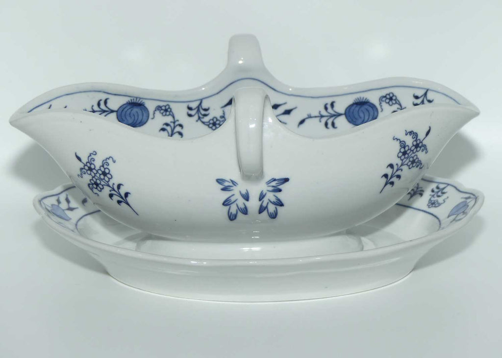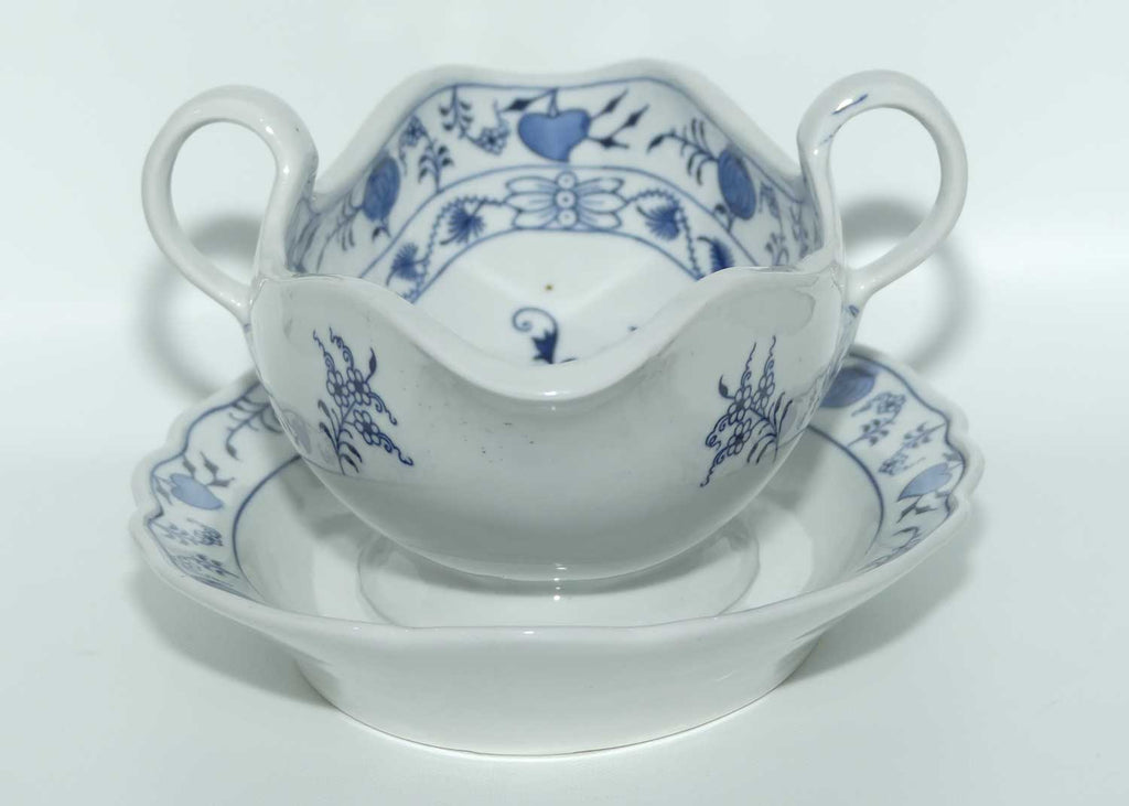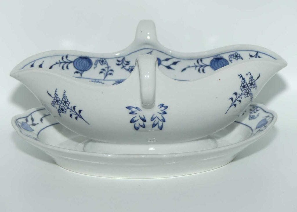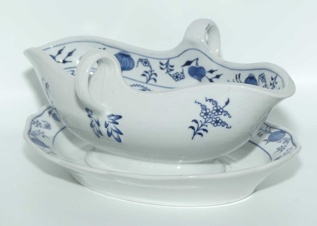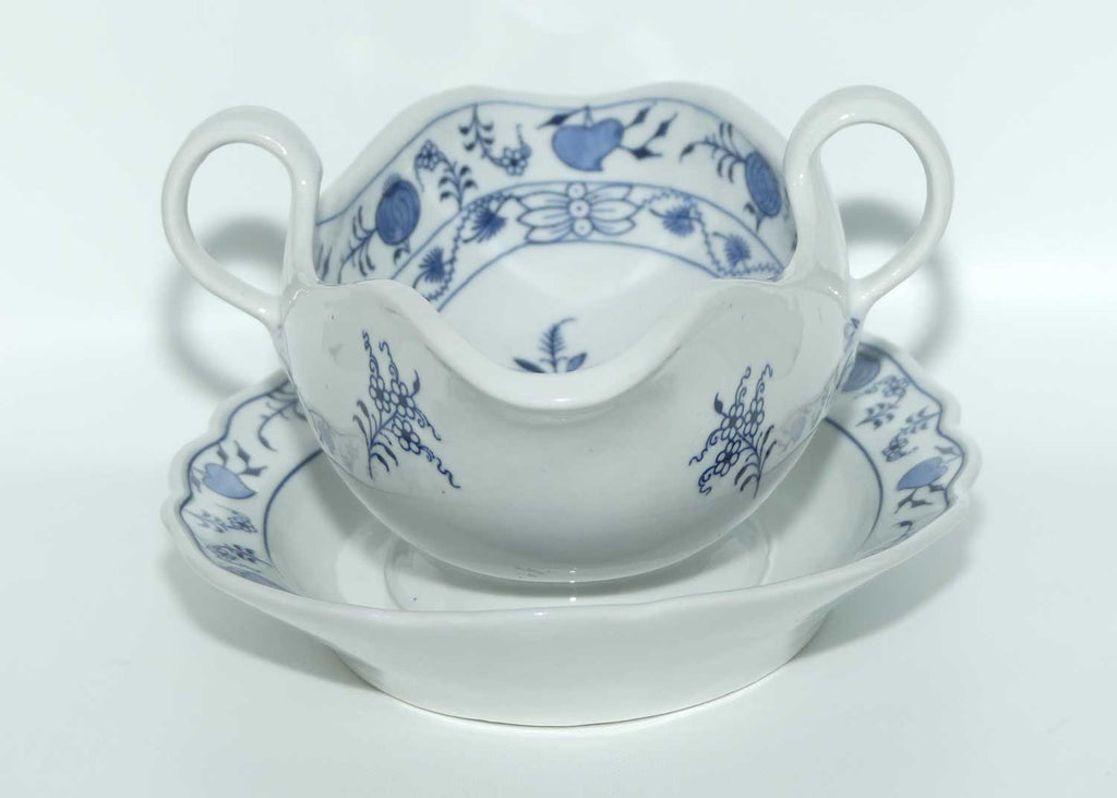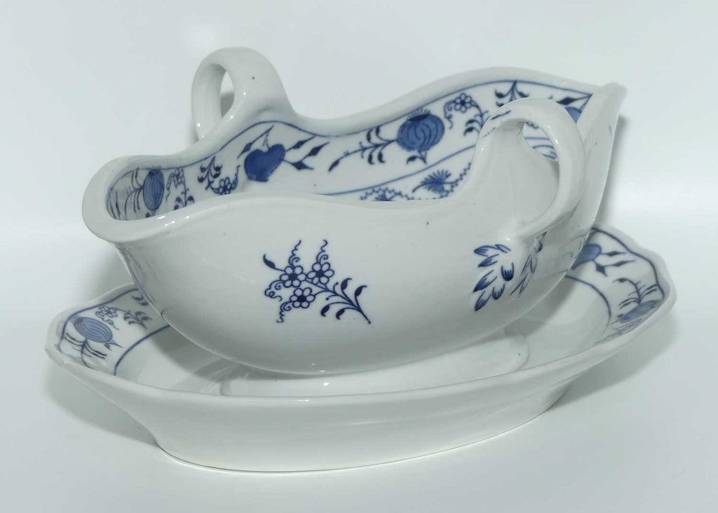 The onion pattern was also produced in the Czech factory located in Eichwald. In 1923 they overtook Ernst Teichert GMBH and two years later also Stockhardt & Schmidt-Eckert. In 1929 porcelain production was stopped. The onion pattern production department bought Lorenz Hutschenreuther AG located in Selb. Carl Teichert’s enterprise, which essentially produced Meissen Blue Onion under licence - remembering Blue Onion was intended for the bourgeoisie – Blue Onion was intended as inexpensive and less sophisticated products. In 1930, the license for the characteristic Meissen ’Onion’ ornament (onion painting) was revoked from the Teichert company. Because of that, the enterprise completely switched to the production of tiles and architectural ceramics.