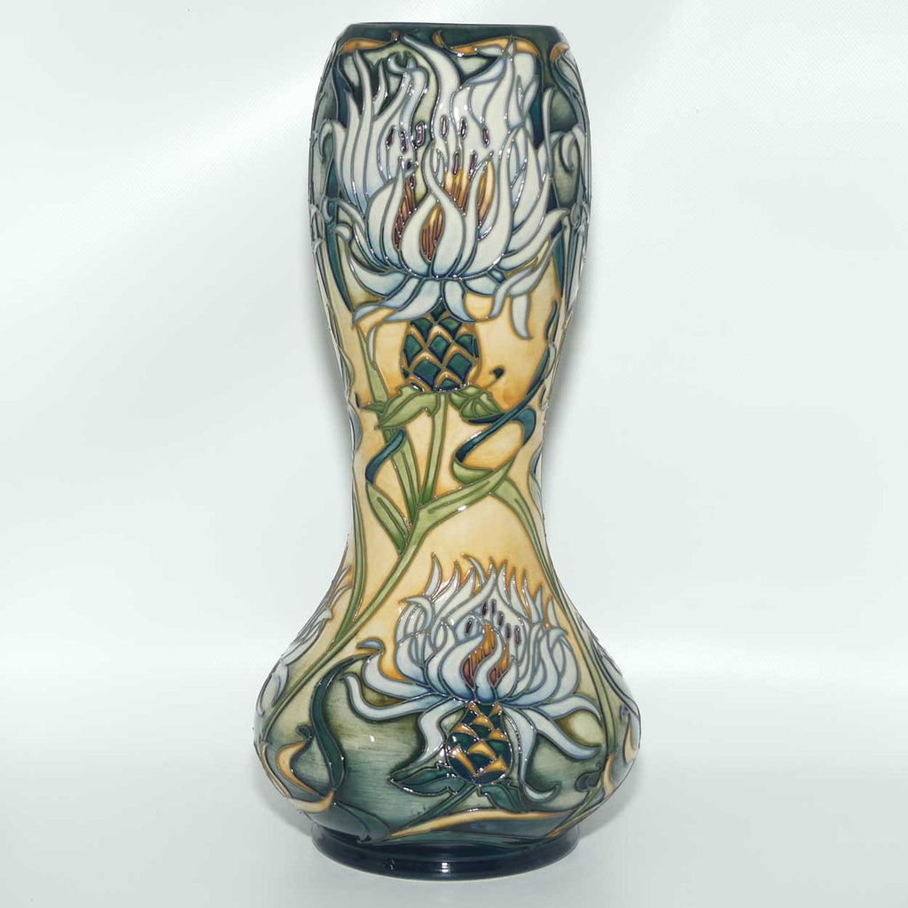 Centaurea Montana, otherwise known as Montana Cornflower, is widespread and common in the more southerly mountain ranges of Europe, but rare in the north. It has also become established in the British Isles, Scandinavia and North America. It grows between 30 and70 centimetres tall and flowers mainly from May to August. Rachel Bishops flowing lines, curves and waves create a feeling of movement - with a true William Moorcroft inspired Florian style in this superb ceramic tribute