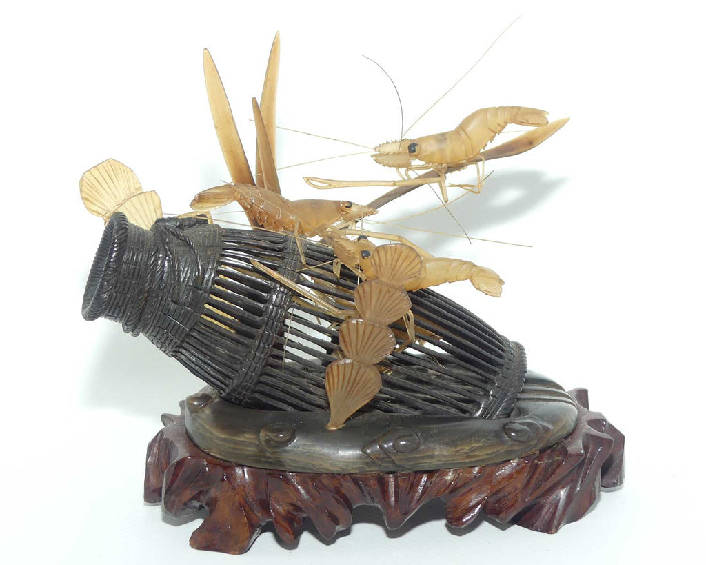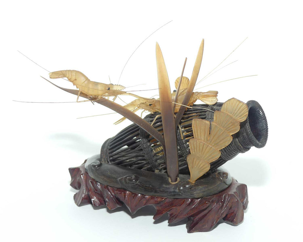 The Shrimps are Carved from Horn and sit on a Wooden base