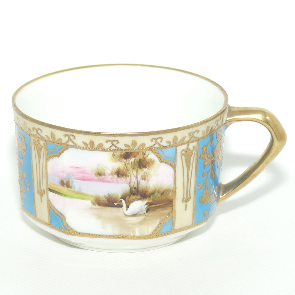 Early Noritake Hand Painted and Gilt decorated Blue ground tea trio | #5 | Lake Scene