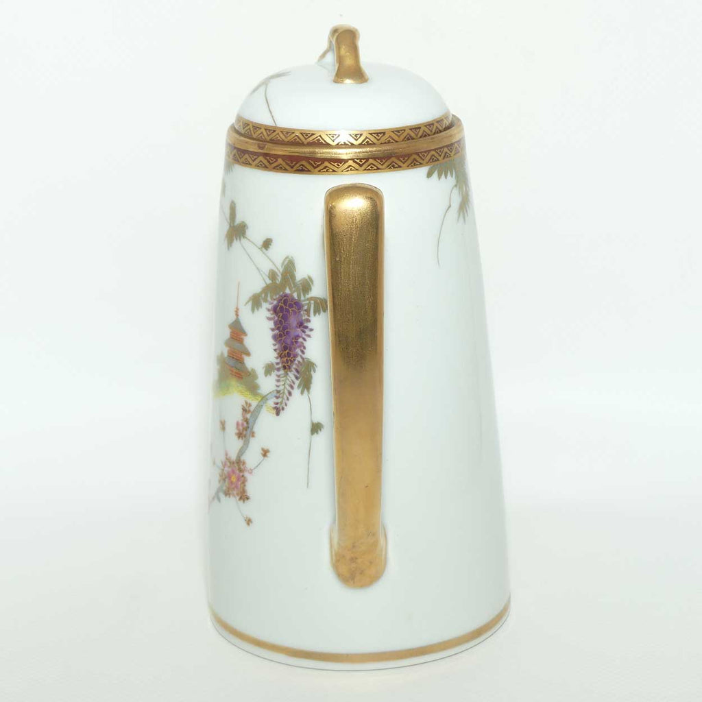 Japanese Eggshell China coffee pot decorated with Pagoda and Wisteria