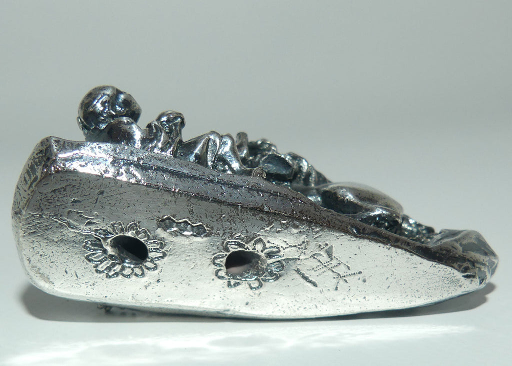 A netsuke is a miniature sculpture, originating in 17th century Japan. They can be made from boxwood, Ivory, Bone and Silver. Initially a simply-carved button fastener on the cords of an inrō box, netsuke later developed into ornately sculpted objects of craftsmanship.