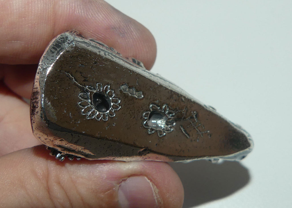 We have acid tested the item with a puritest silver test and it tests in the range of .800 to .900 silver [doesn't test at .999 or .925]