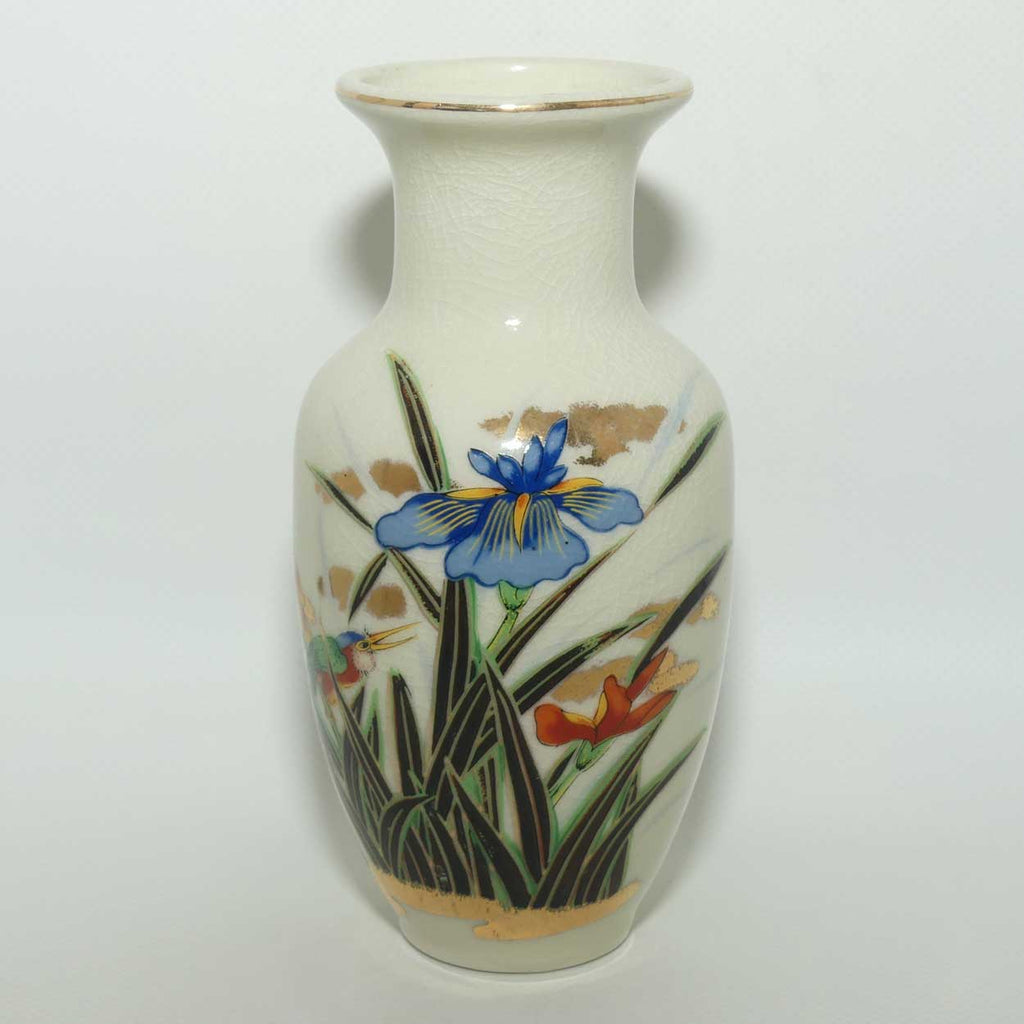 Japanese Pottery vase decorated with Iris Flowers and Kawasemi Kingfisher