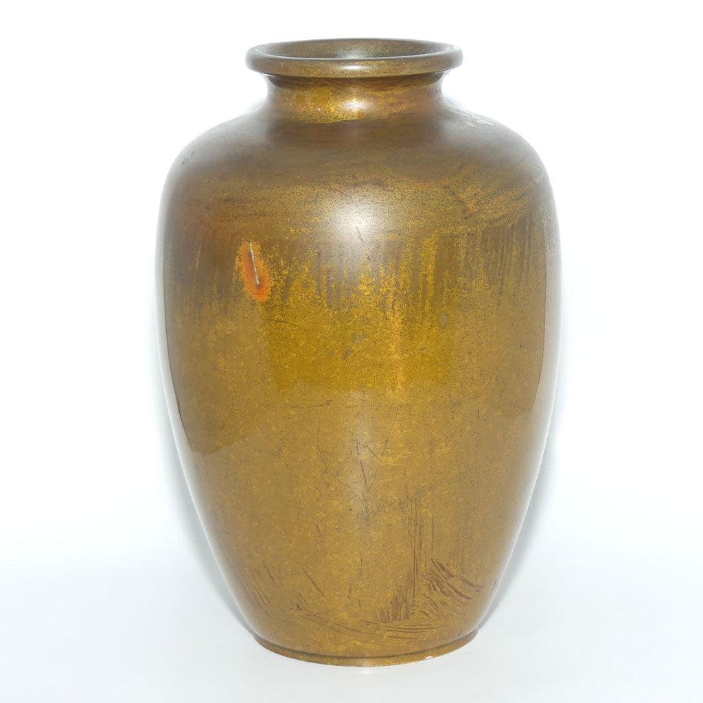 A very attractive late 19th or early 20th century Japanese bronze and mixed metal vase, using the damascene technique to inlay white and yellow metal over the very attractively toned bronze base. The scenes are traditionally Japanese, this vase seeing Chrysanthemum and a small Butterfly