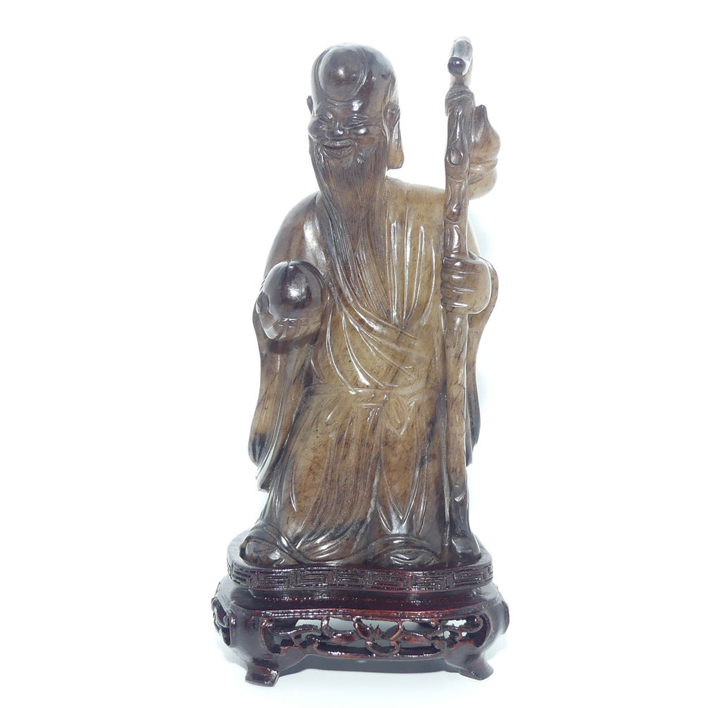 Artistic representations often depict Shouxing as a bearded old man with a high brow and a crooked staff in one hand. He holds the peach of immortality in his other hand. A stork or turtle is often added as a further symbol of longevity, which the Chinese view as a special blessing.