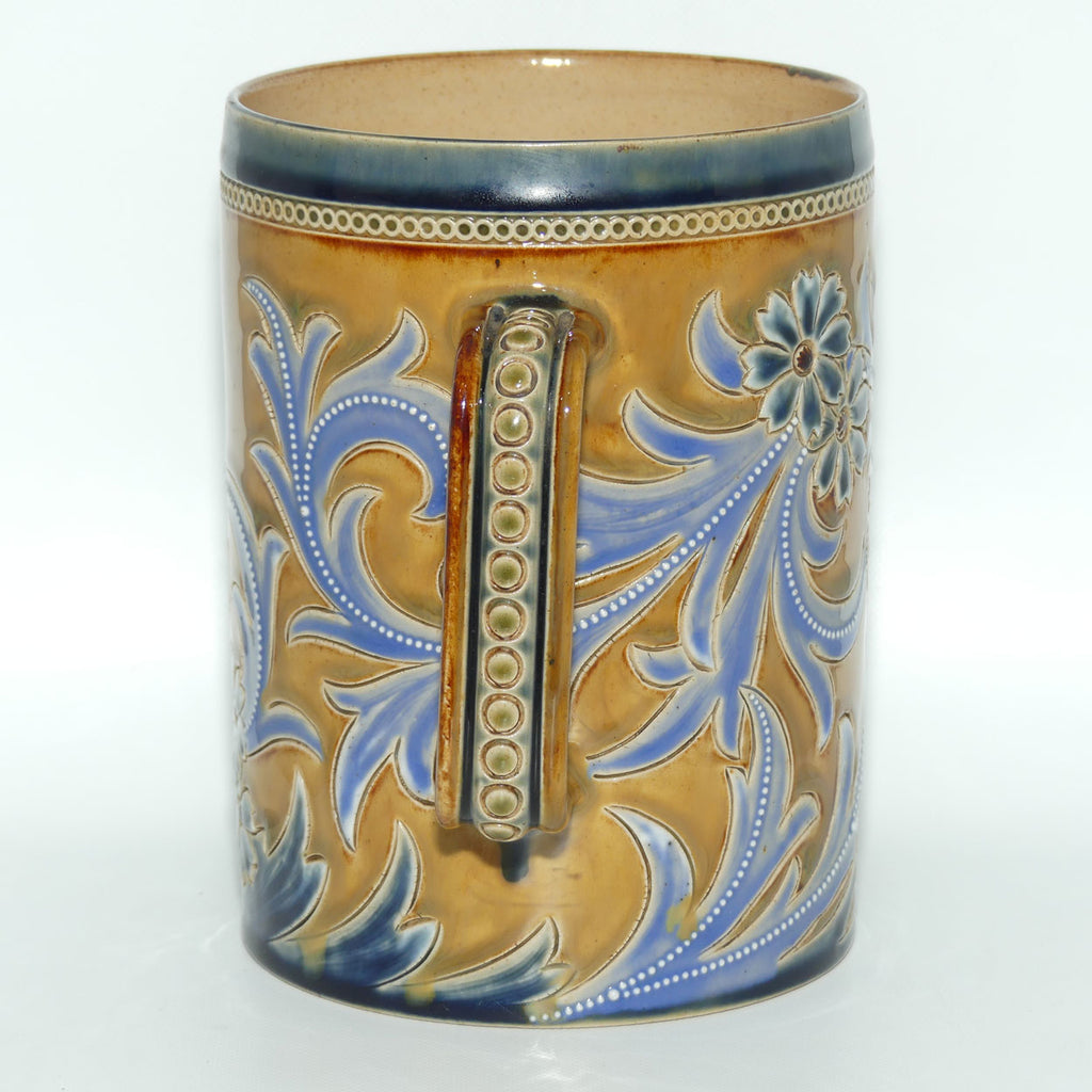Doulton Lambeth stoneware double handled loving cup with beads, flowers and foliage by Eliza Simmance (signed to base of cup)