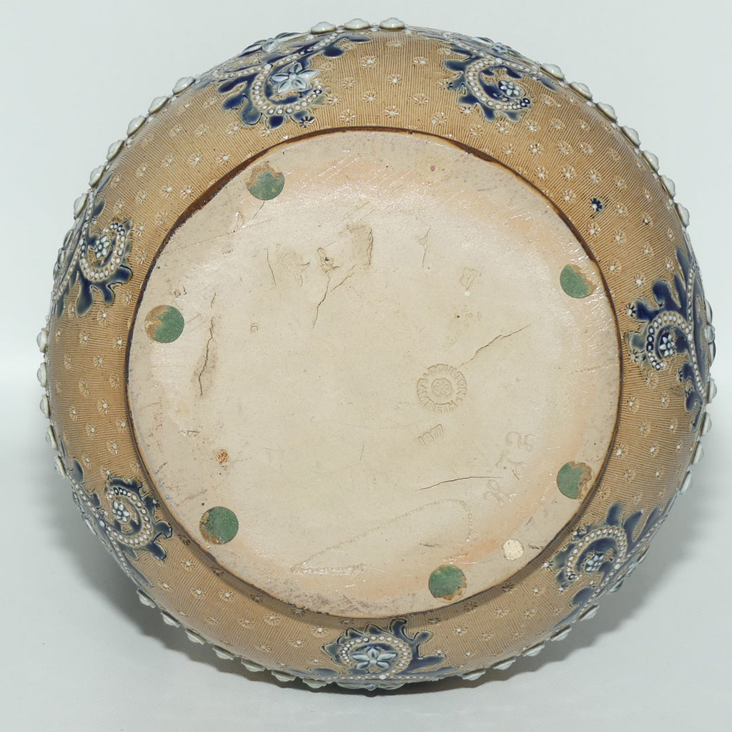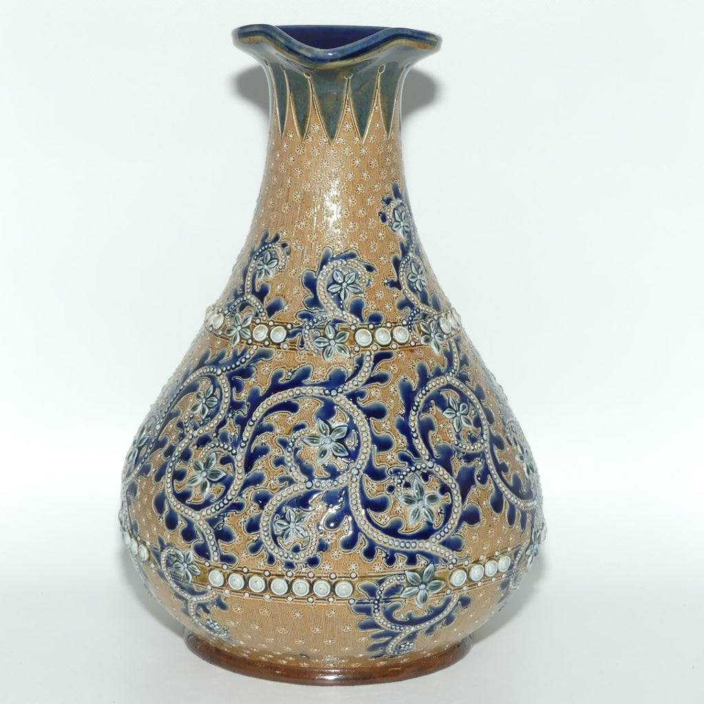 Doulton Lambeth stoneware bulbous jug with rosettes, beads and foliage