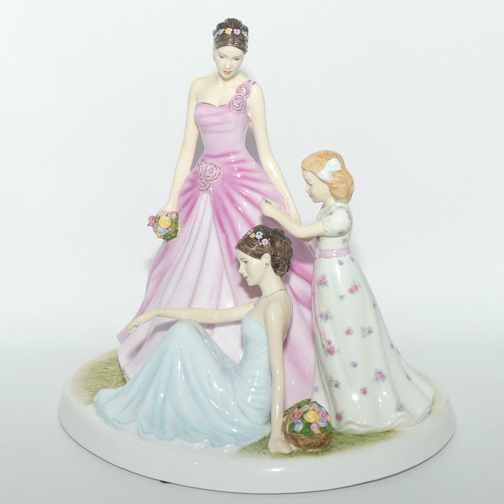 Midsummer Celebration, a beautiful tableau showing three women bedecked with circlets and bouquets of flowers, tells a wonderful story of preparation and anticipation of a joyous day ahead, and is full of delicate detail for which Royal Doulton has been admired for so long. Each of the figurines wears an elegant summer gown and is gracefully posed as the youngest maiden places a final flower in the floral headband of her sister.