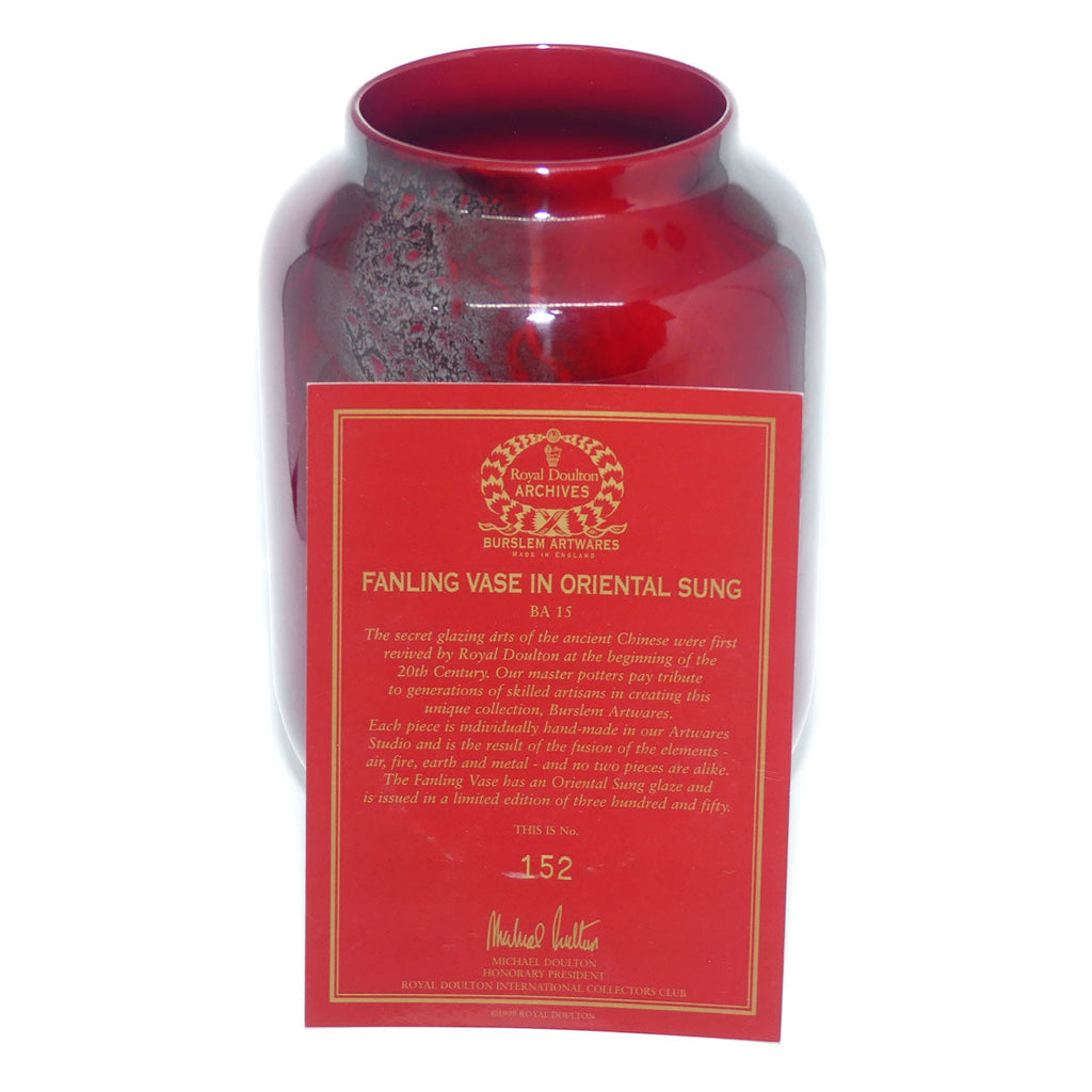 ABOUT FANLING VASE IN ORIENTAL SUNG: The secret glazing arts of the ancient Chinese were first revived by Royal Doulton at the beginning of the 20th century. Our master potters pay tribute to generations of skilled artisans in creating this unique collection, Burslem Artwares.