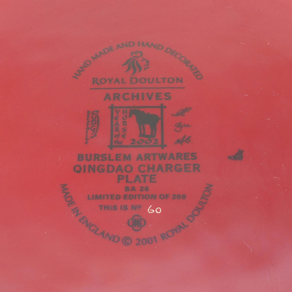 ABOUT QINGDAO CHARGER PLATE: The secret glazing arts of the ancient Chinese were first revived by Royal Doulton at the beginning of the 20th century. Our master potters pay tribute to generations of skilled artisans in creating this unique collection, Burslem Artwares.