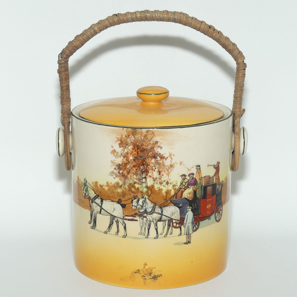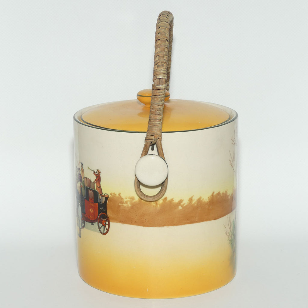 Royal Doulton Coaching Days biscuit barrel with wicker handle
