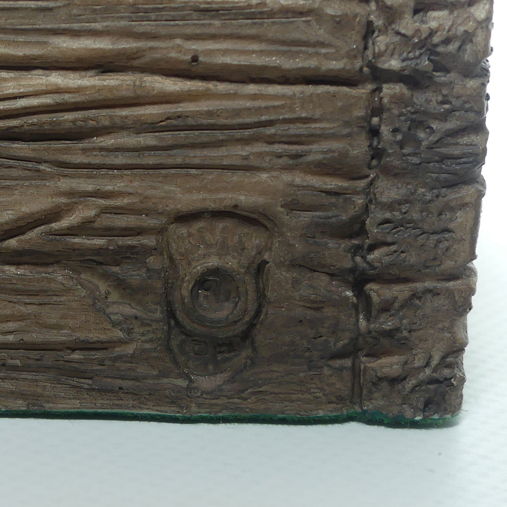 This character sculpture is made from resin - Royal Doulton briefly experimented with a range of Character Sculptures made from resin in the 1990s, the resin allows extra intricacy and detail to be moulded, that was not available through the medium of porcelain. While these items do not carry a HN number to base, there is a clear Royal Doulton RD impressed mark on the rear of the figure, and an adhesive Royal Doulton foil label on the felt base.