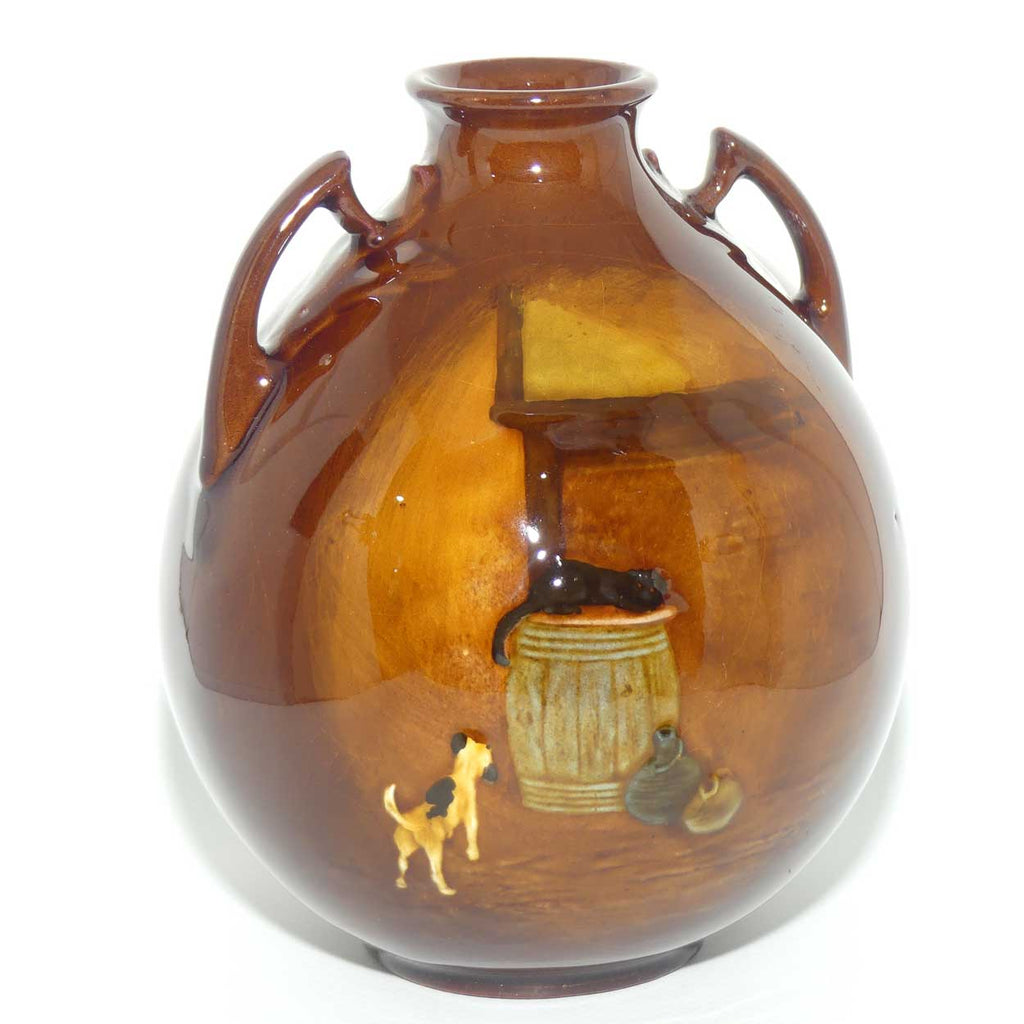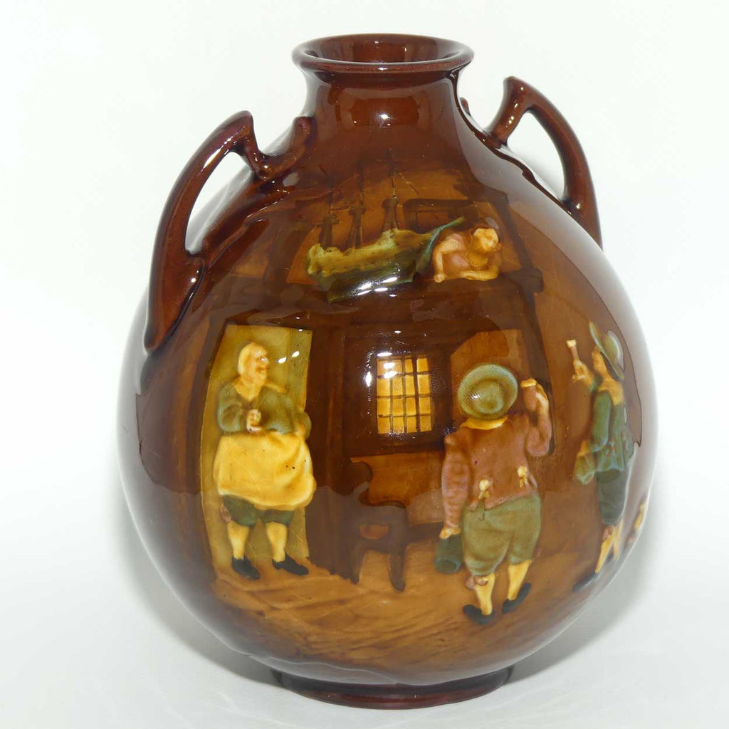 An interesting design with Two Puritan gentlemen raising a glass to the Innkeepers wife with a Model ship near her - and a Friar style publican in the doorway
