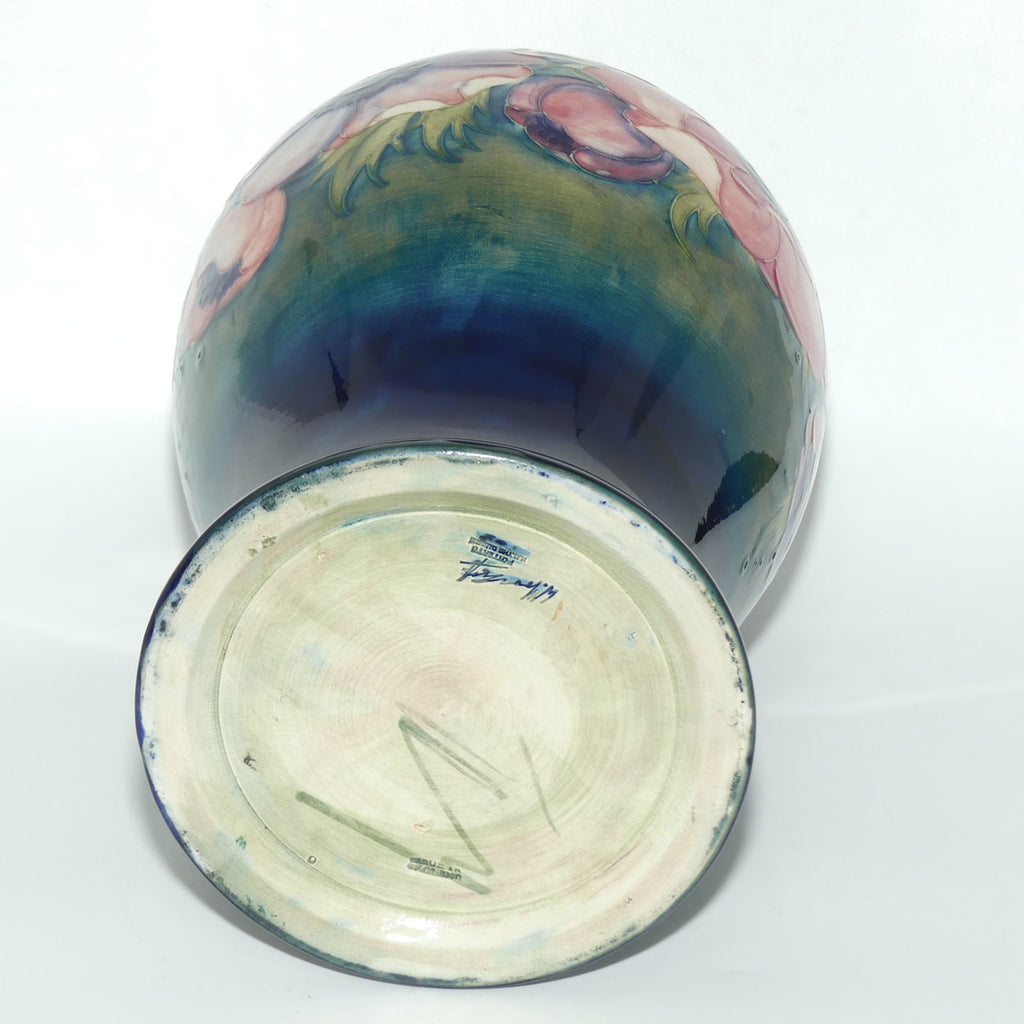 A bold and beautiful large proportioned post WWII era piece, with a lot of attention to finery detail in the green leaves between to big Anemone flowers.
