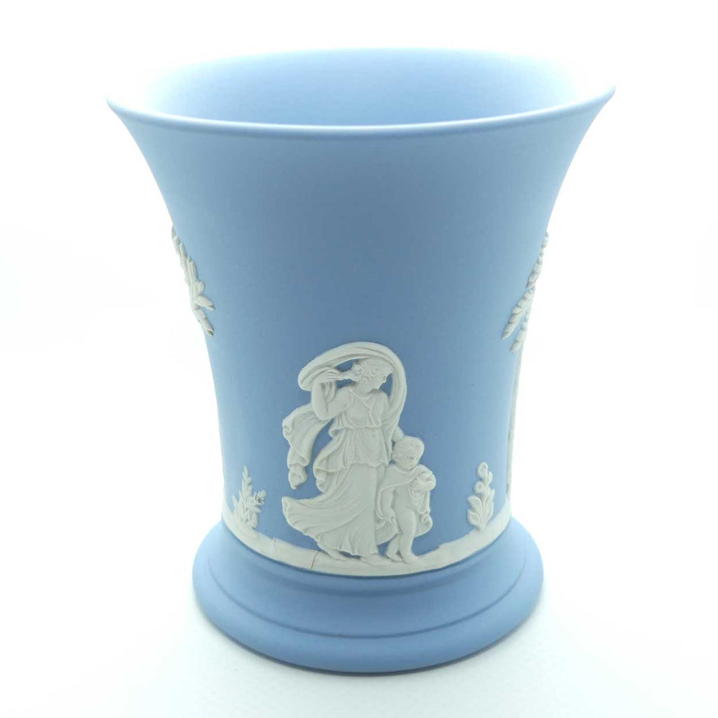 Wedgwood Jasper | White on Pale Blue | Flaired and Footed vase | #2