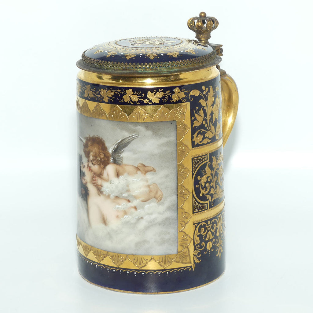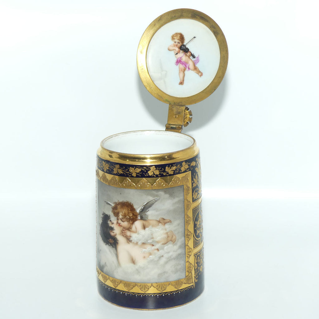 Under the lid of the Tankard - Cupid is Depicted with a Violin and the feint outline of a hand is seen handing him a Bow