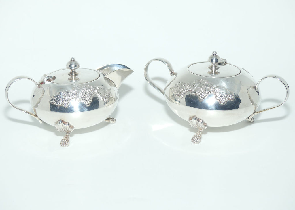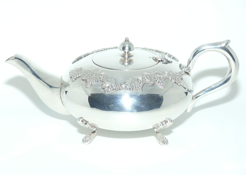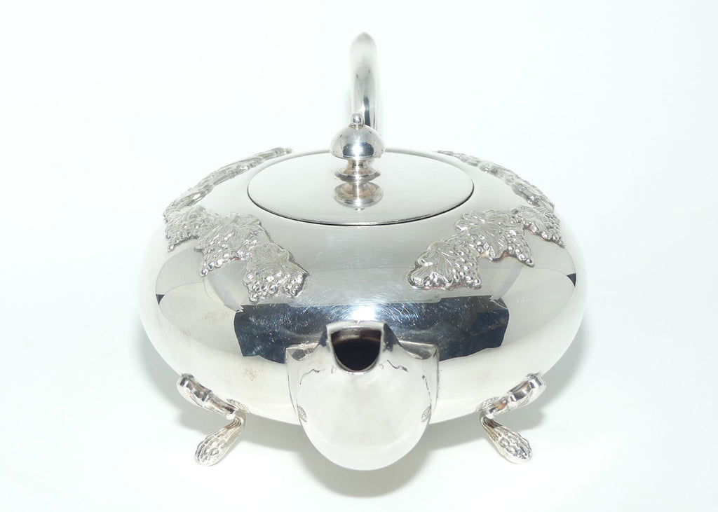 An unusual Globular shape tea service that sits on Lion Paw feet and decorated with a Grape and Vine pattern