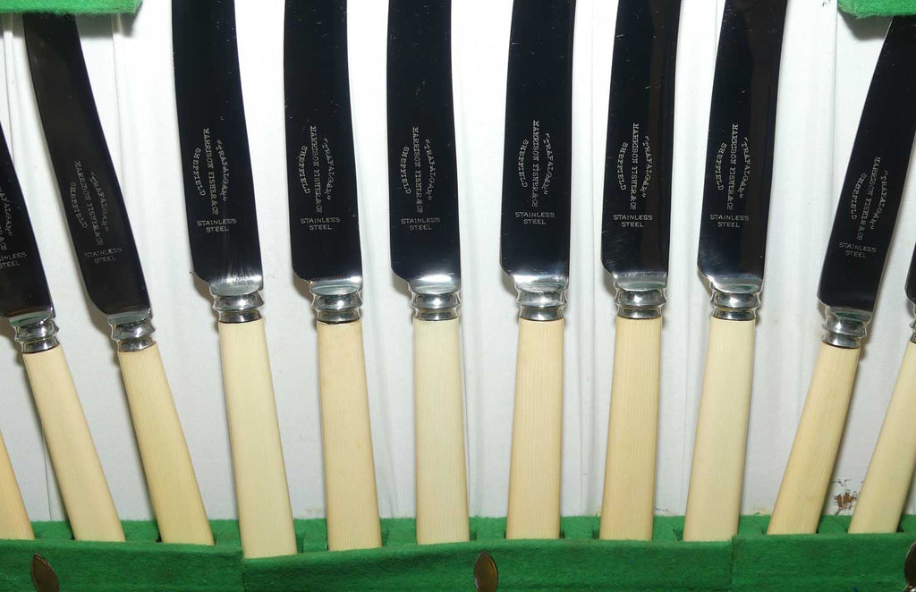 Overall, having recently cleaned the Canteen with a light application of furniture polish and given the Cutlery a light polish with Goddards - this set as is good as any we have handled. It has been carefully looked after and the set is ready to give decades of pleasure and service. Only issue of note is a slight hole in the canteen lining.