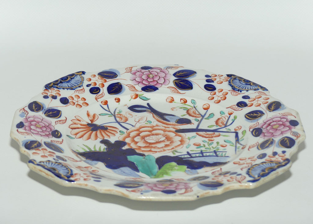 A lovely Mason's style indented edge plate in a striking 'Aesthetic' pattern. A particularly nice feature are the four moulded scallop shells which form part of the border. All in all, a stunning plate with a full Aesthetic Japan pattern which displays very well.