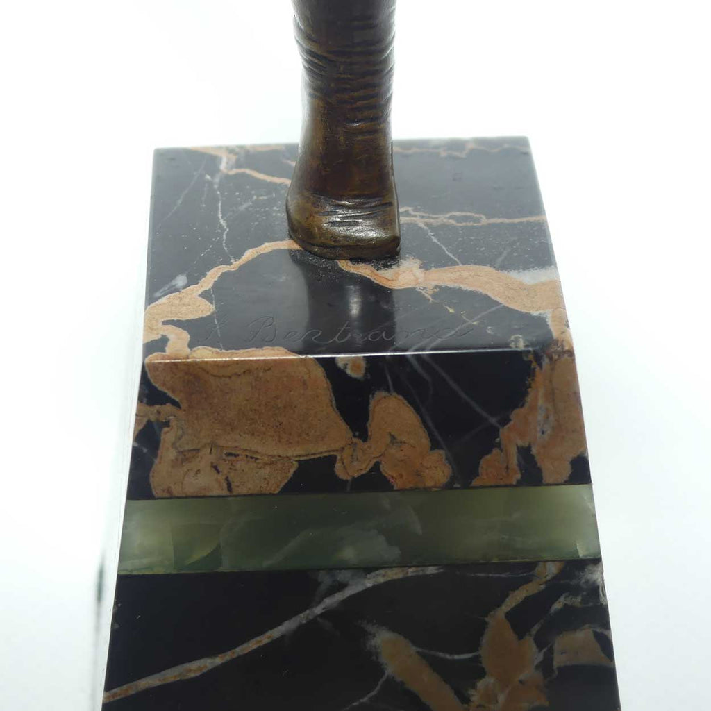 engraved S Bertrand cursive signature to the top of the dark marble base