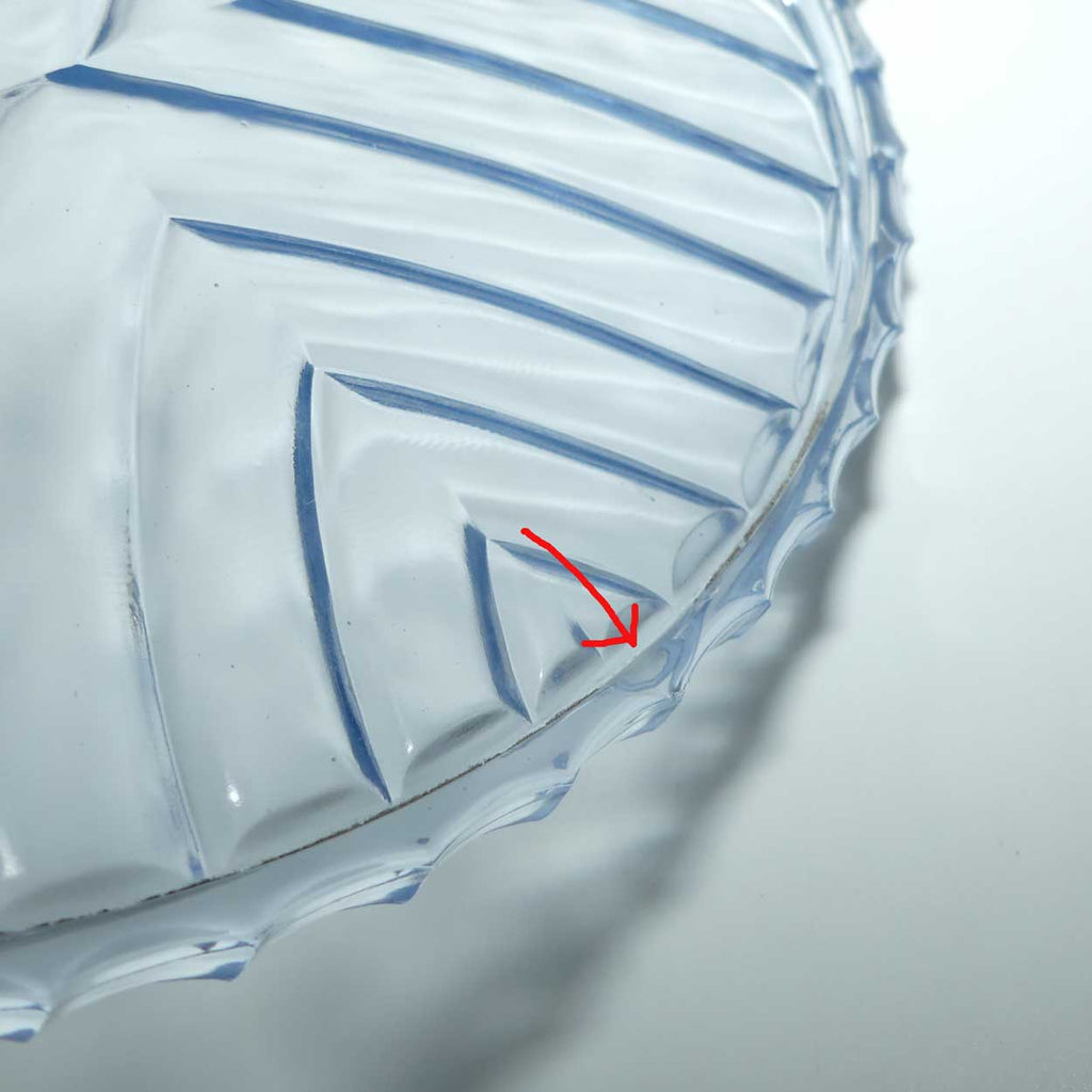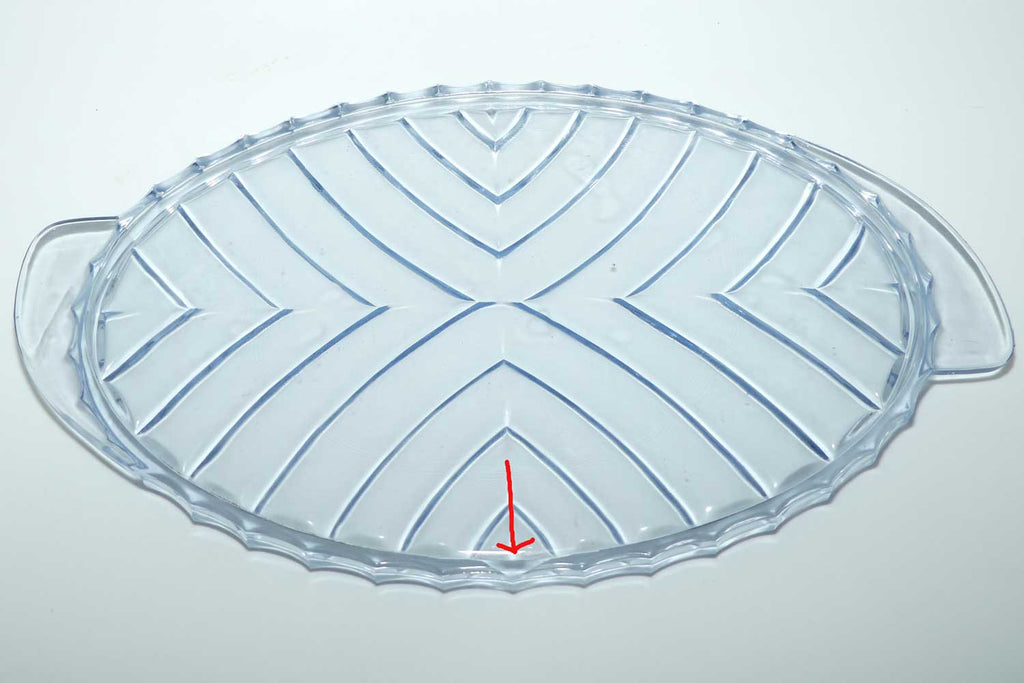 Only thing of note is either a chip or part of the actual shaping on the tray and I say this because the scallop follows the form of the pattern - we tried to photograph it in the pictures - see red arrow. Not significantly detracting.