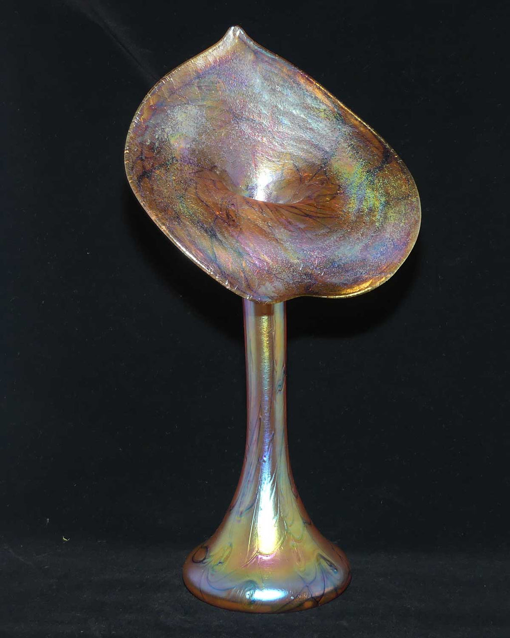 Art Nouveau Favrene glass Jack in the Pulpit vase with Mulberry and Lustre tones