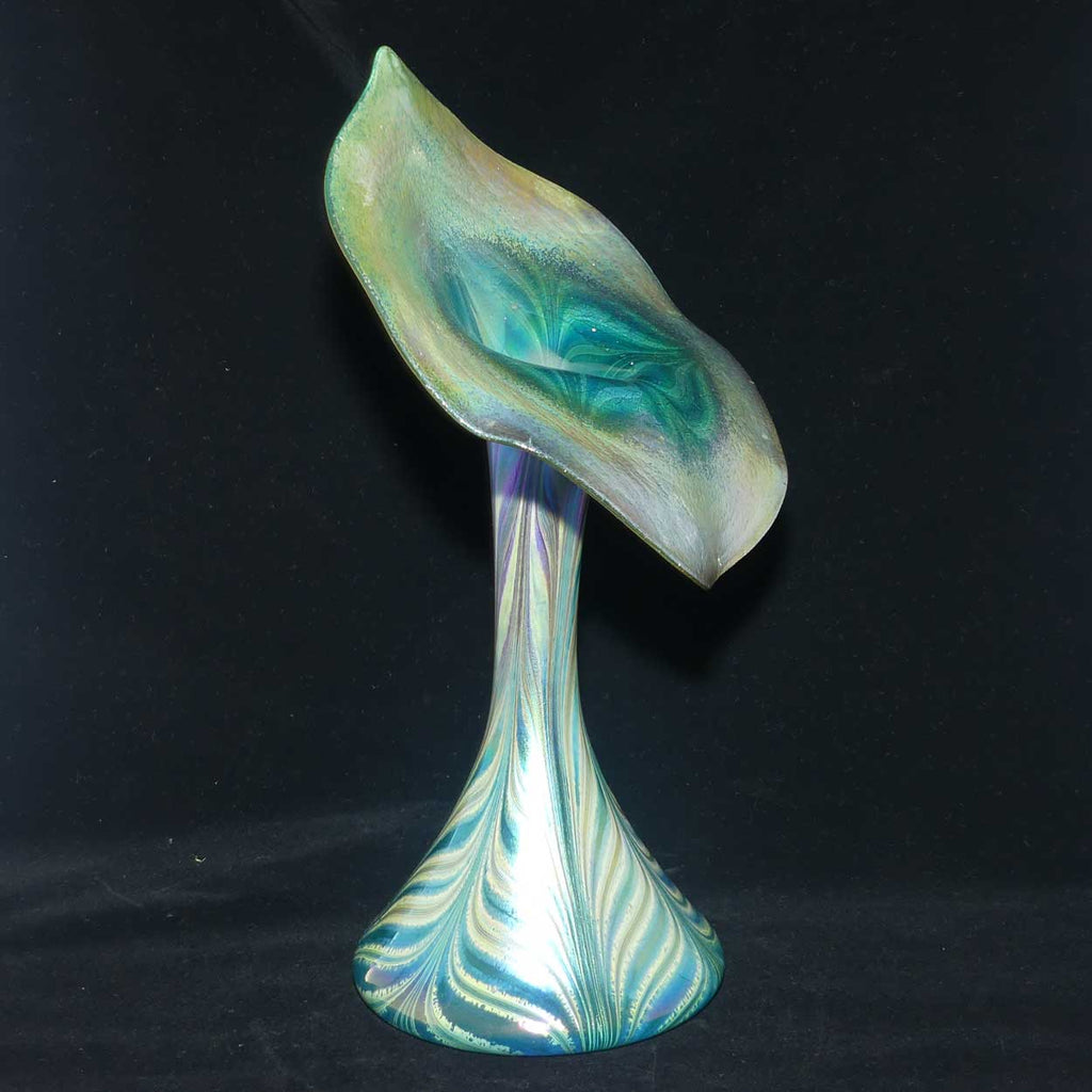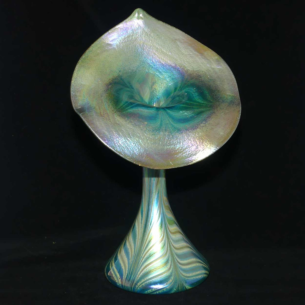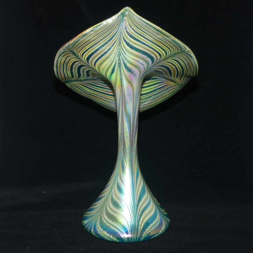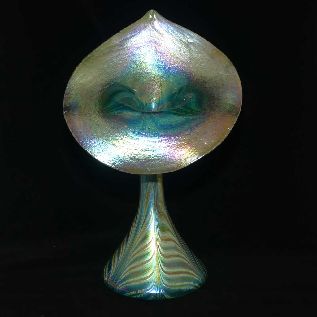 Art Nouveau Favrene glass Jack in the Pulpit vase with Peacock Tones
