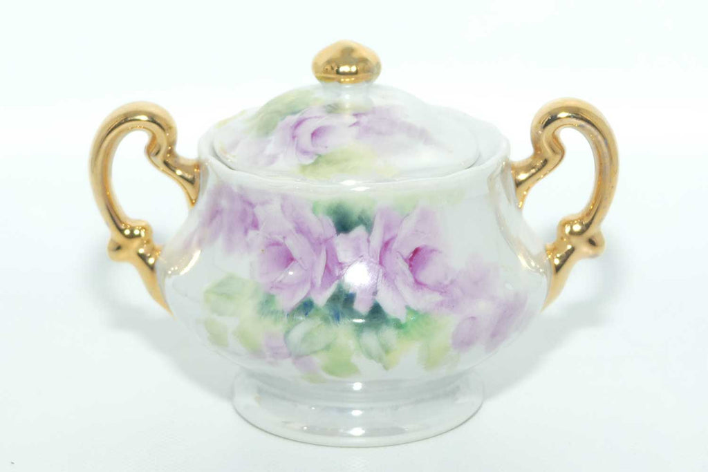 Australian China Painting milk and sugar decorated with Mauve flowers and a lustre finish
