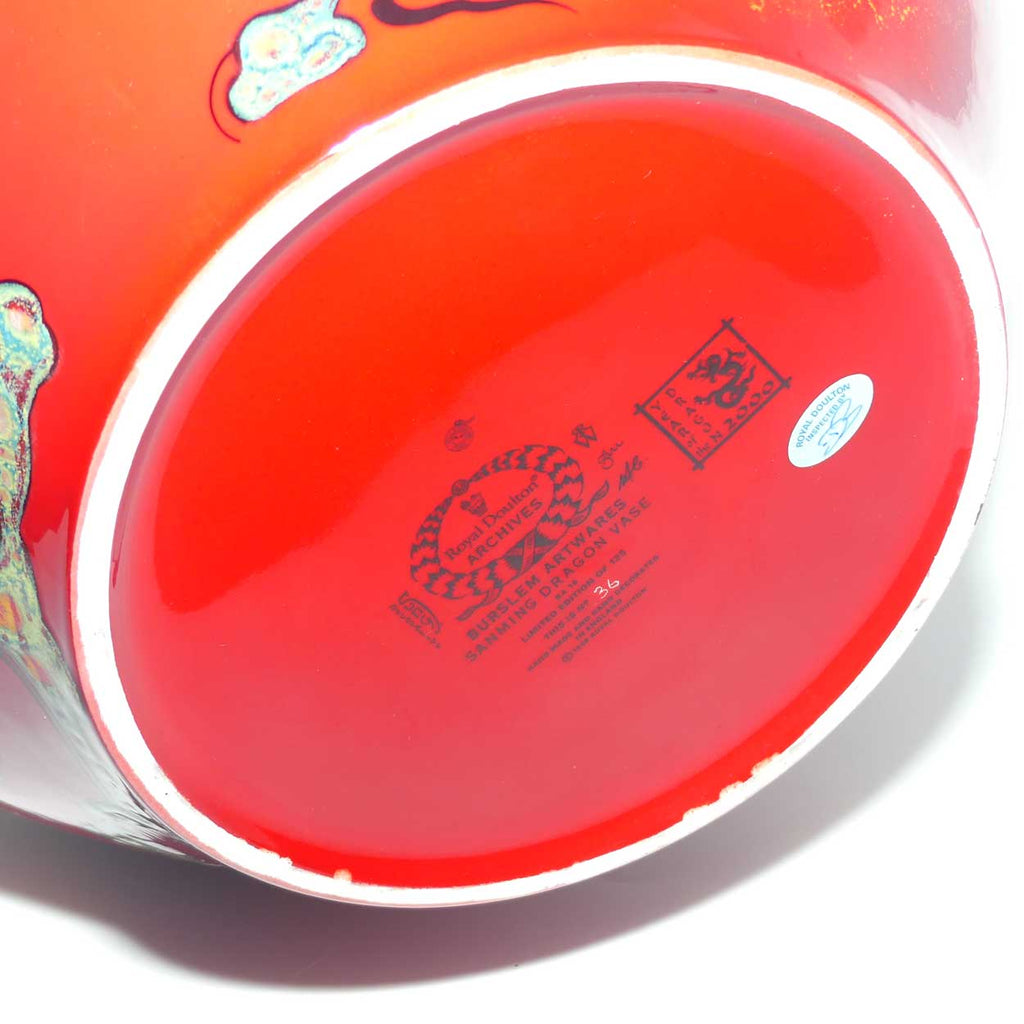 Each piece is individually hand - made in our Artwares Studio and is the result of the fusion of the elements - air, fire, earth and metal - and no two pieces are alike. The Sanming Dragon vase has an Oriental Sung Glaze and is issued in a Limited Edition of one hundred and twenty five pieces.