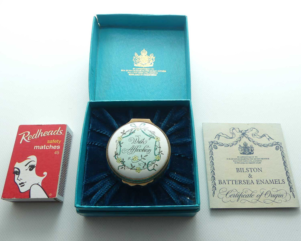Bilston and Batterseas story begins in 1968, when the twentieth-century revival of English enamelling began in Bilston, with the forming of Copper Enamels (Bilston) Ltd., by the Marshall family. Two years later, the name was changed to Bilston & Battersea Enamels and an innovative venture with a London-based antiques dealer, designing boxes based on those made in Georgian times, promptly followed. The name of Bilston & Battersea was soon established as a manufacturer of prestigious, luxury, enamel items collected around the world.