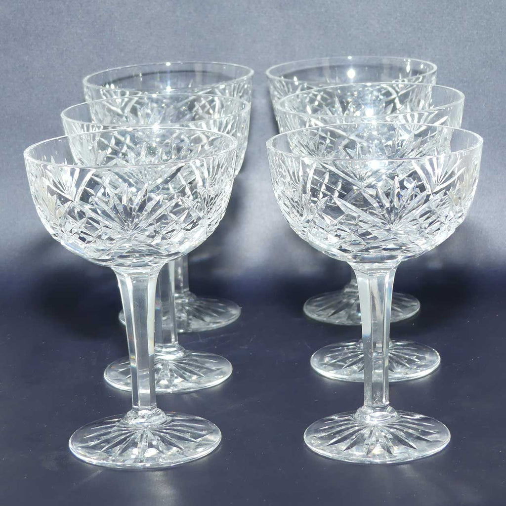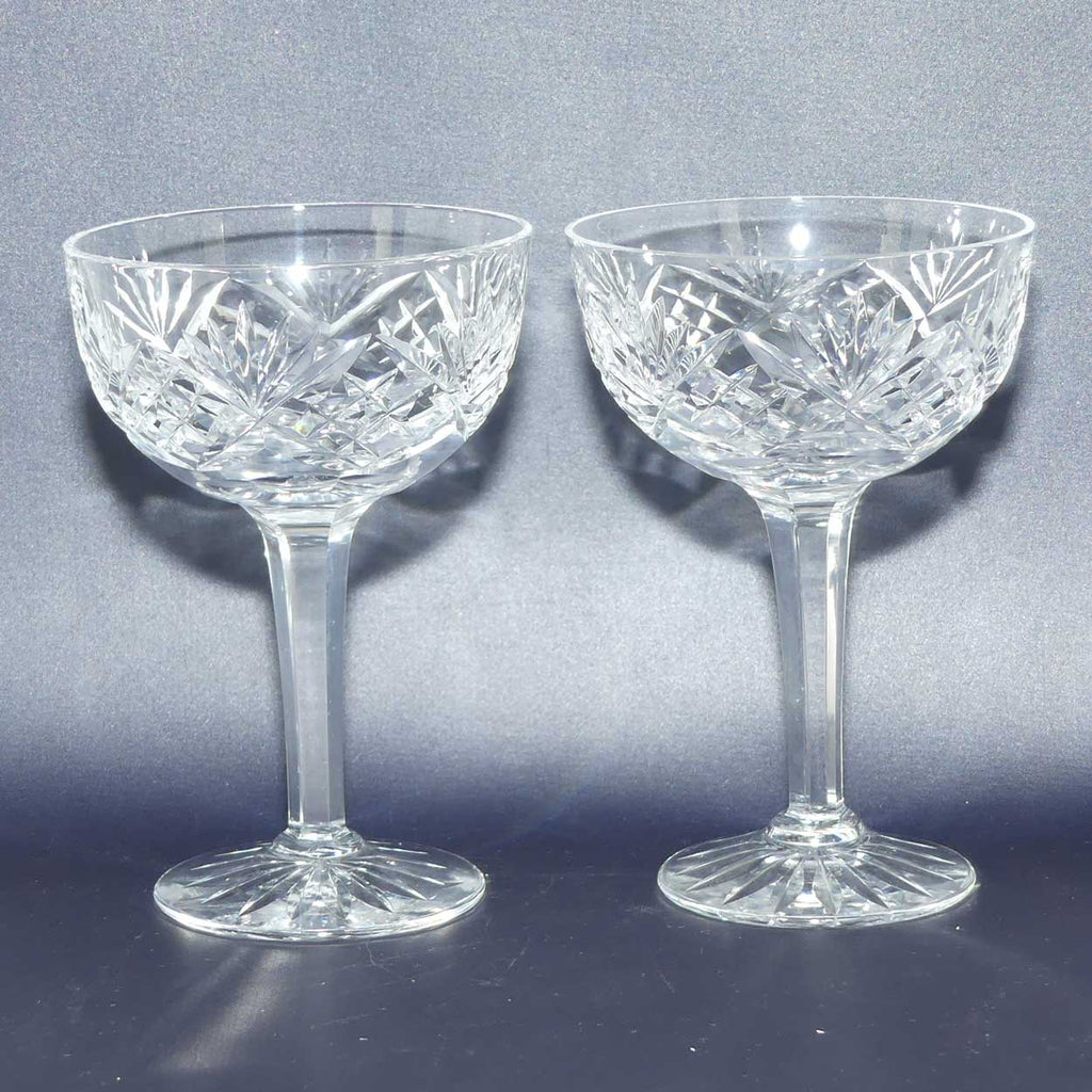 Boda Crystal Set of 6 Champagne Saucers with superb facetted Hexagonal Columns