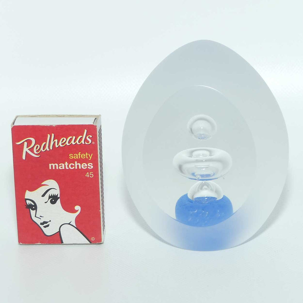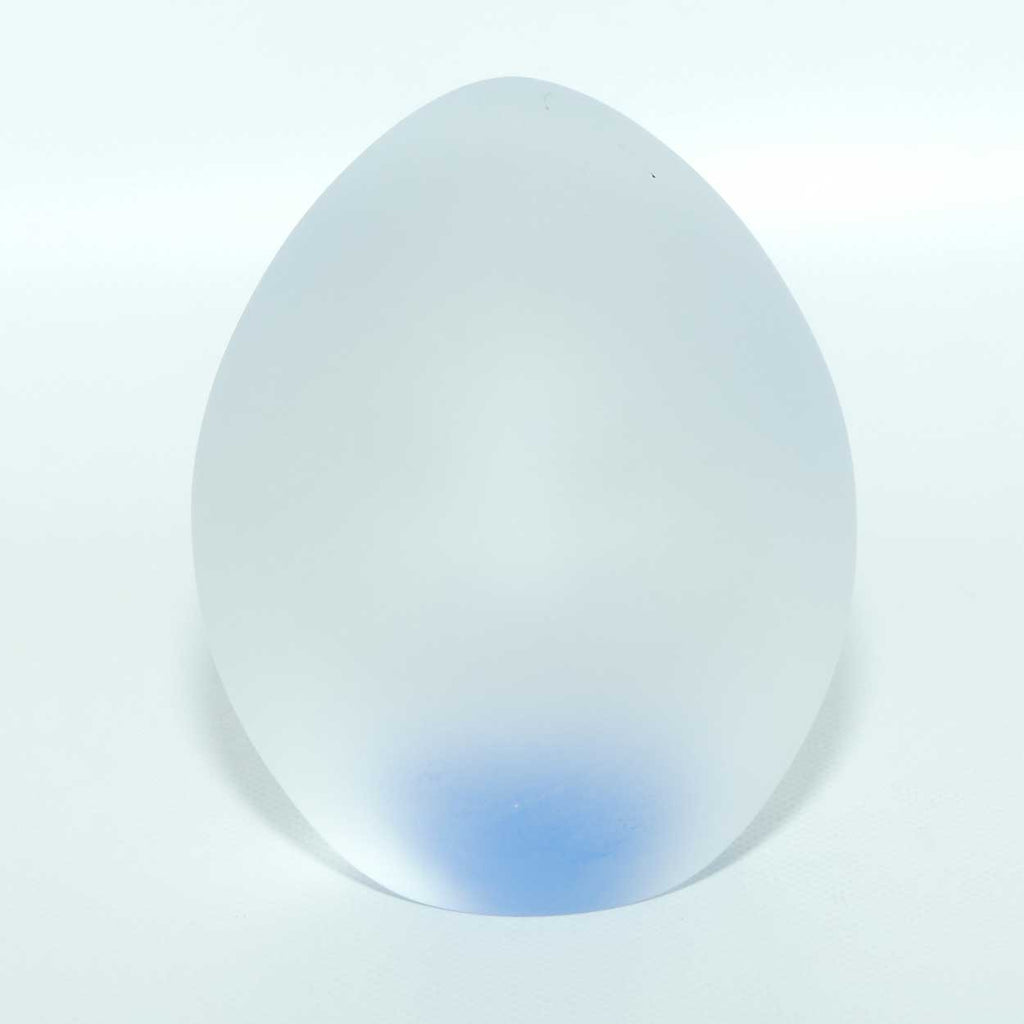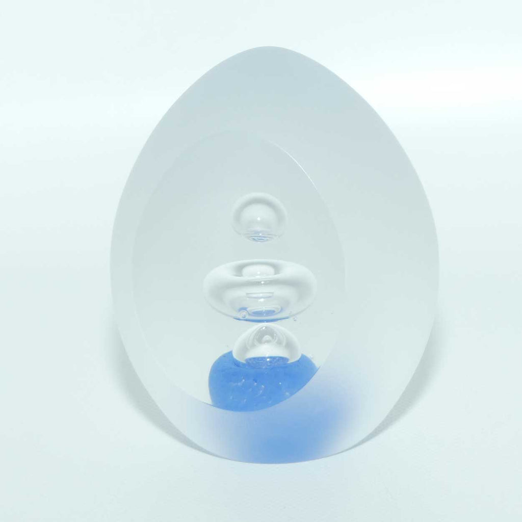 A superb egg shaped paperweight, with controlled bubble design and acid etched finish
