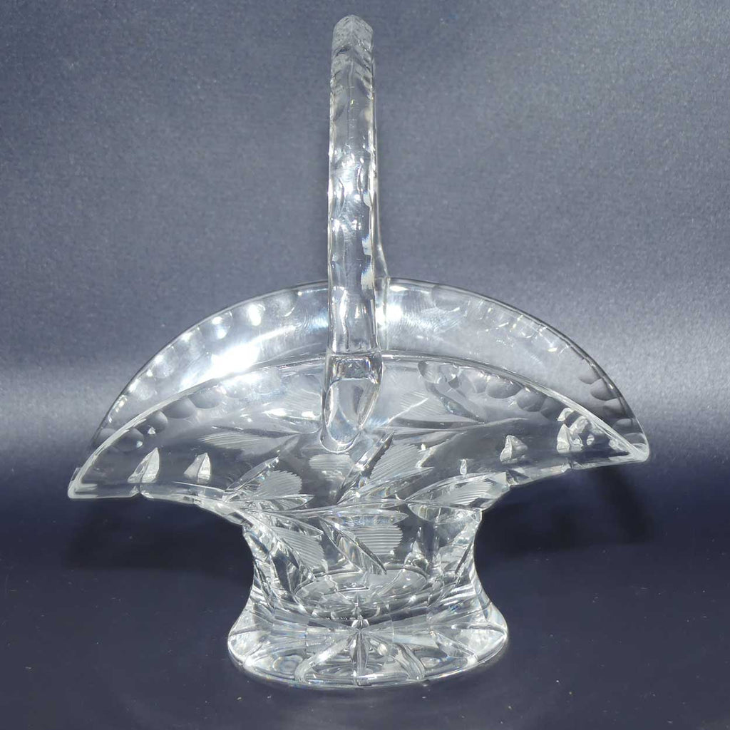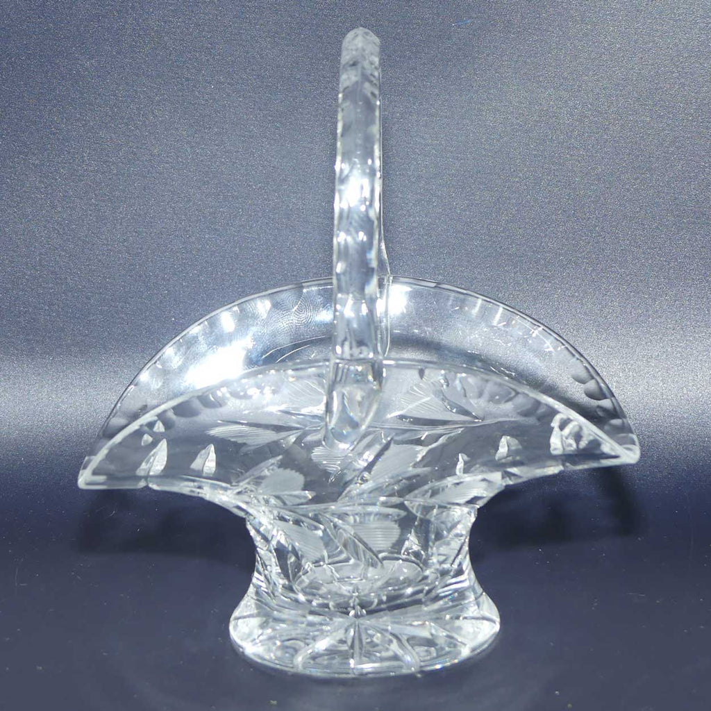 Cut Floral pattern on basket, a facetted star to base and scalloped decoration to handle